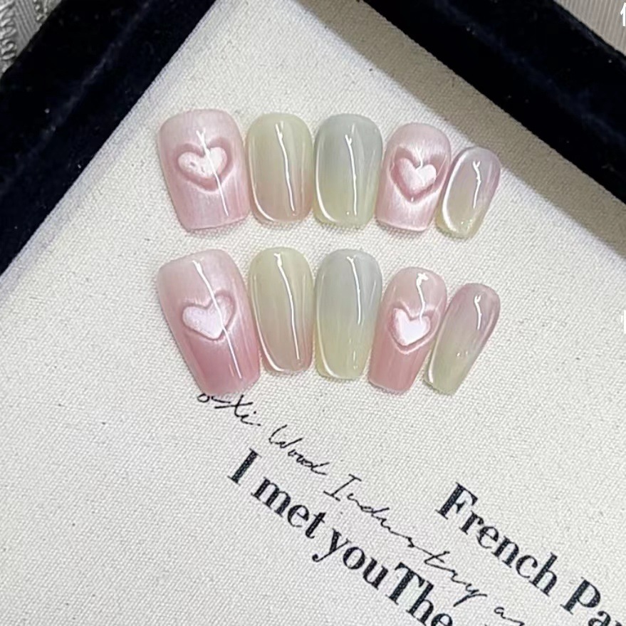 柰姿 纯手工光疗穿戴甲梦幻泡影批发成品重复使用美甲贴片可拆卸