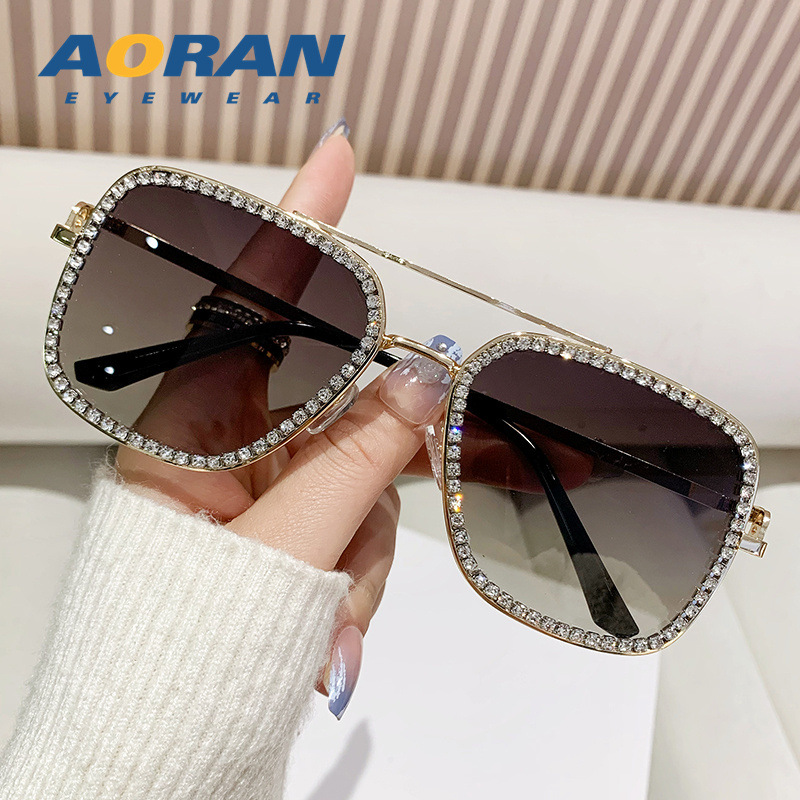新款防紫外线镶钻墨镜女士ins街拍韩版复古大脸显瘦网红太阳眼镜