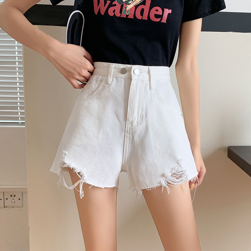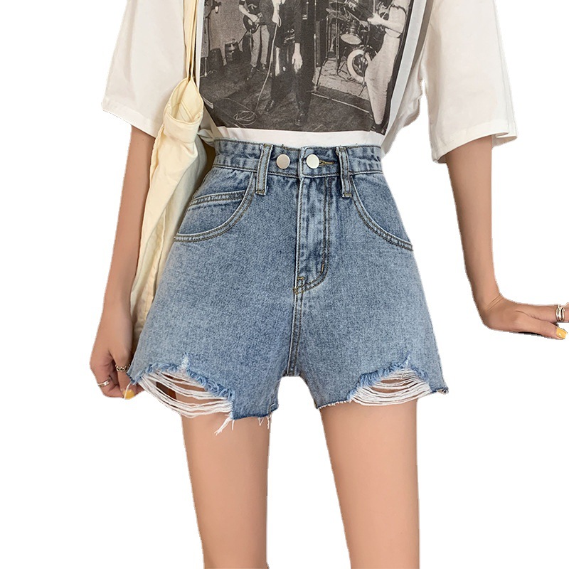 夏季原宿风破洞牛仔短裤女高腰显瘦a字热裤大码宽松ins韩版阔腿裤