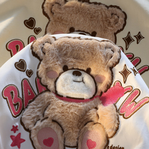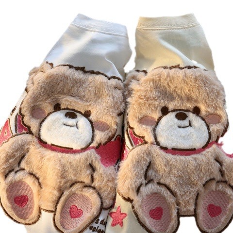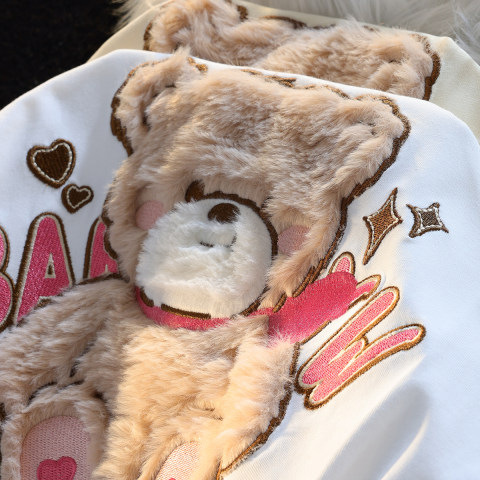 植绒小熊纯棉短袖t恤女宽松设计感小众可爱美式复古情侣上衣夏季
