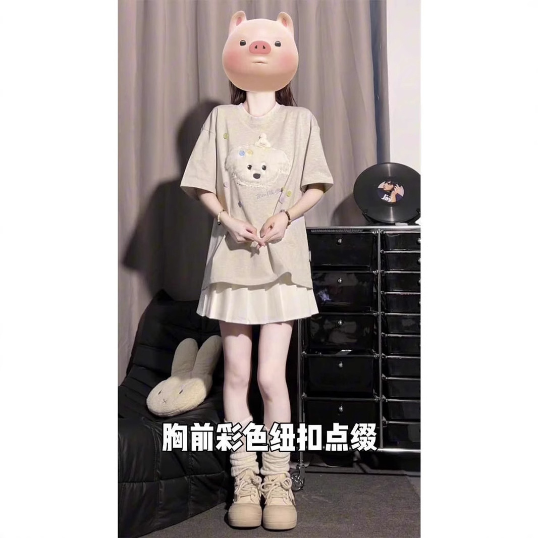 外贸批发中长款短袖T恤女夏季新款趣味设计感小众宽松打底衫