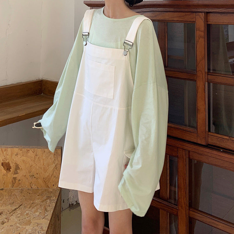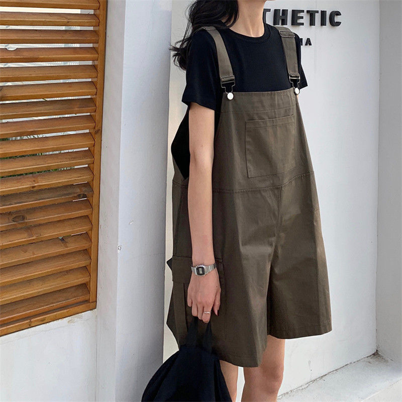 五分背带裤女个性潮夏季薄款小个子工装裤高腰宽松显瘦阔腿短裤子