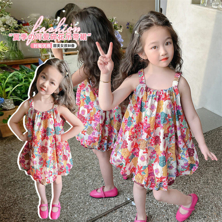 女童吊带裙夏季新款油彩斑斓满印花朵宝宝可爱公主裙公主风