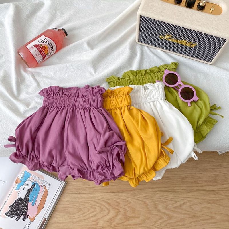 夏季女童短裤宝宝洋气儿童个性潮牌韩版木耳边高腰花苞裤时髦热裤