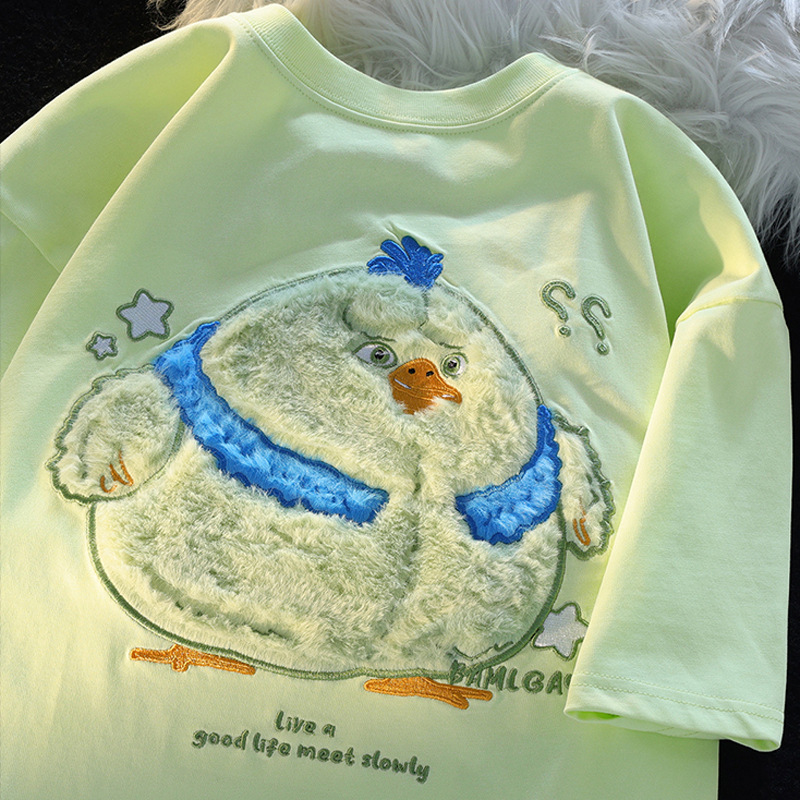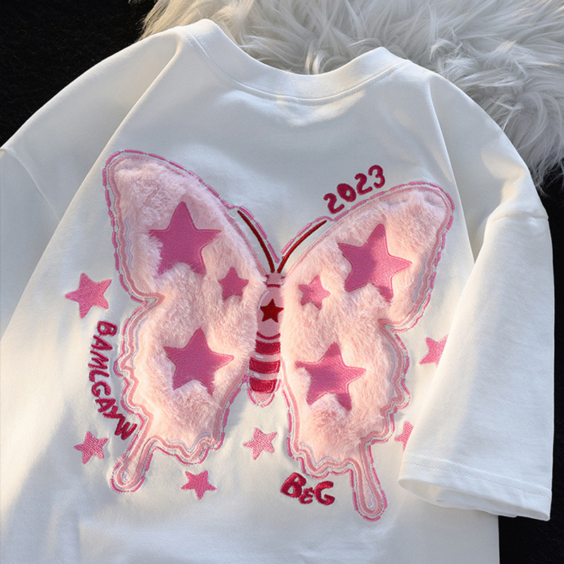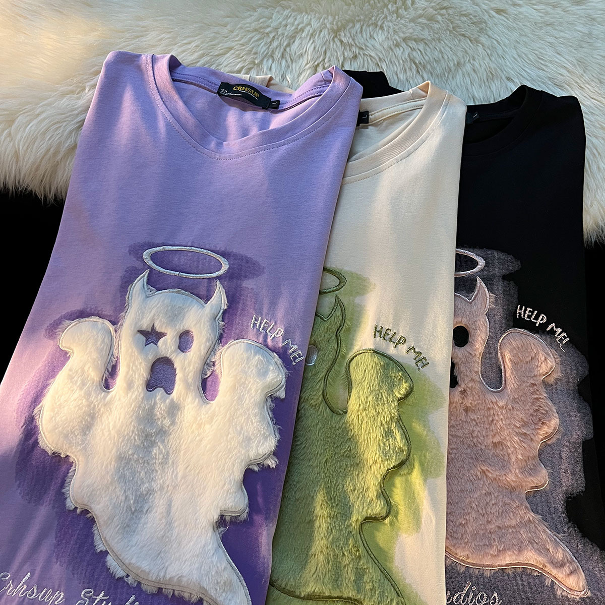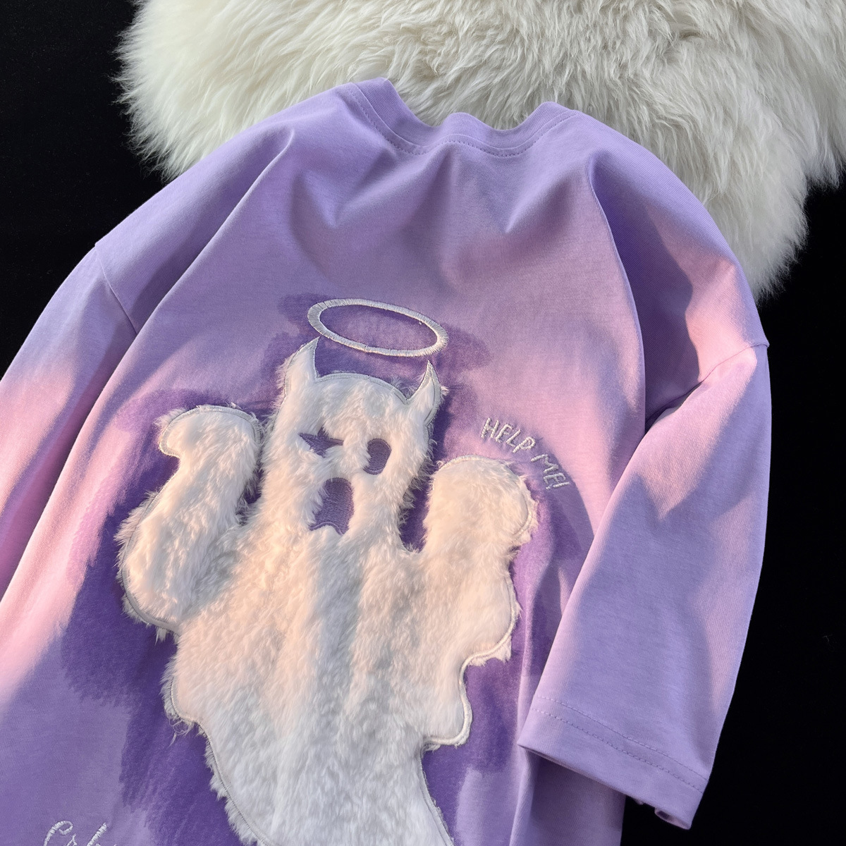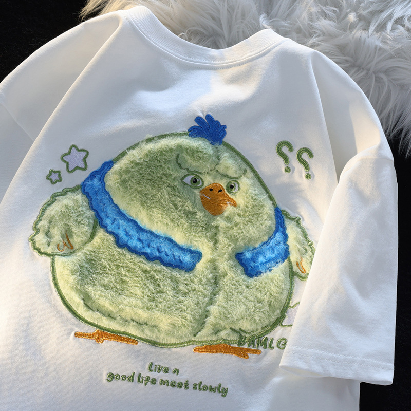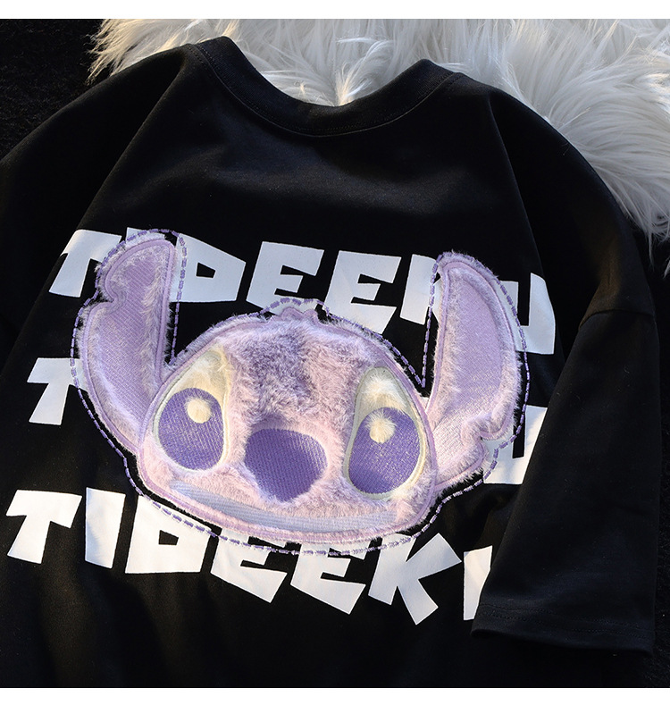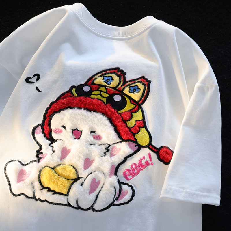 植绒甜美毛绒兔子纯棉短袖t恤女宽松可爱日系chic独特上衣超好看