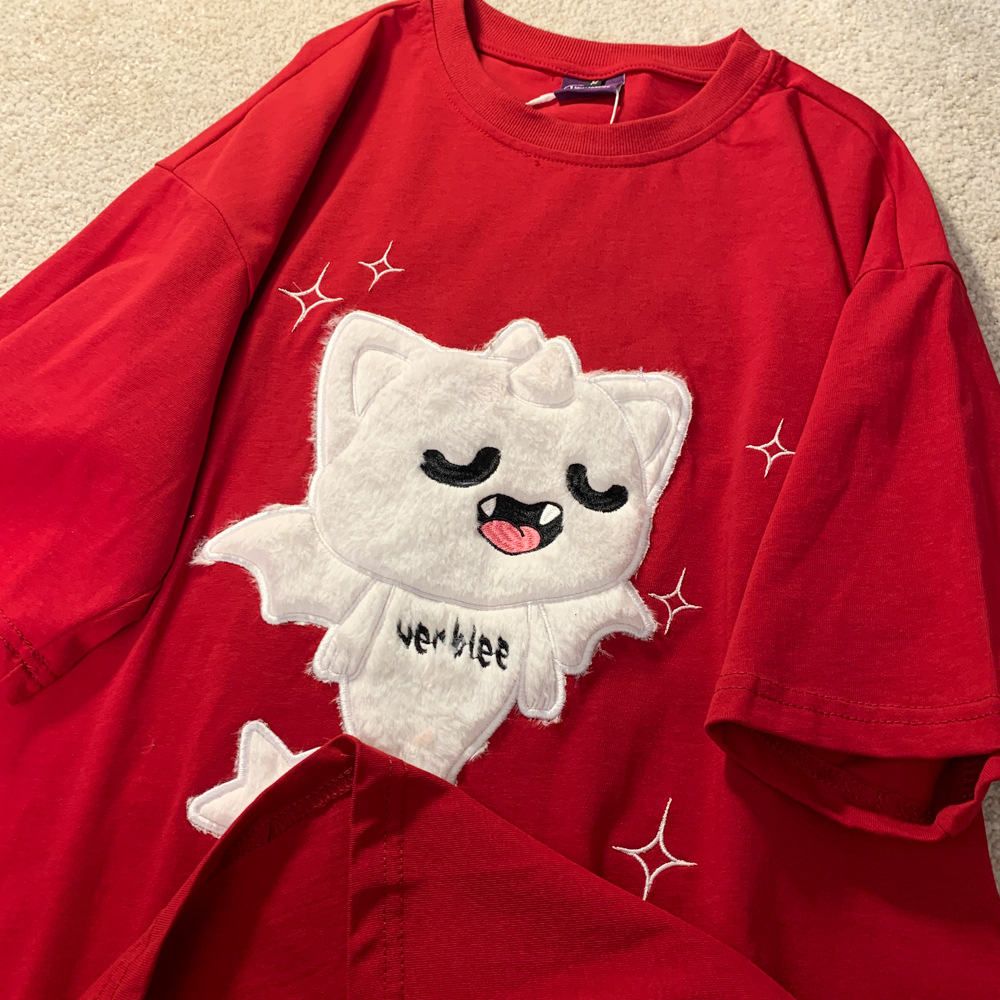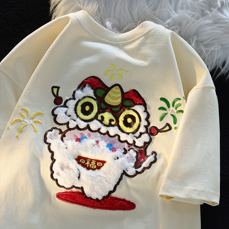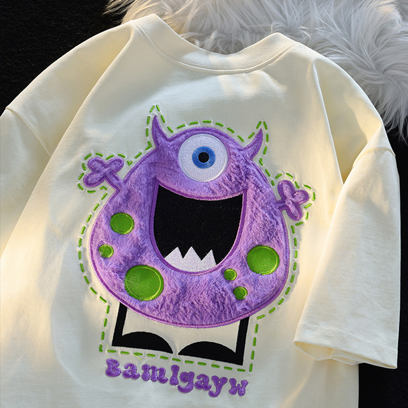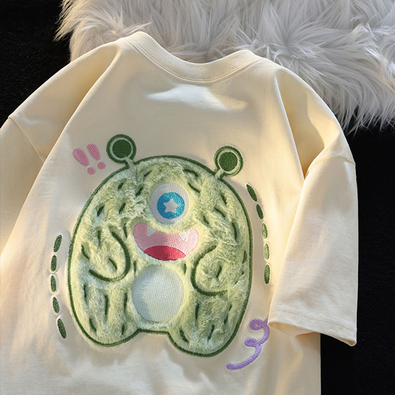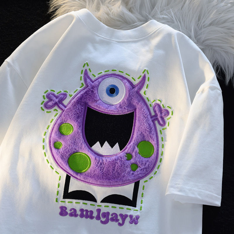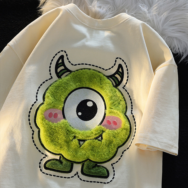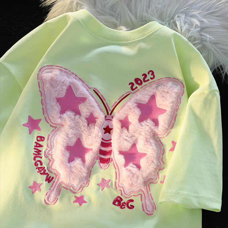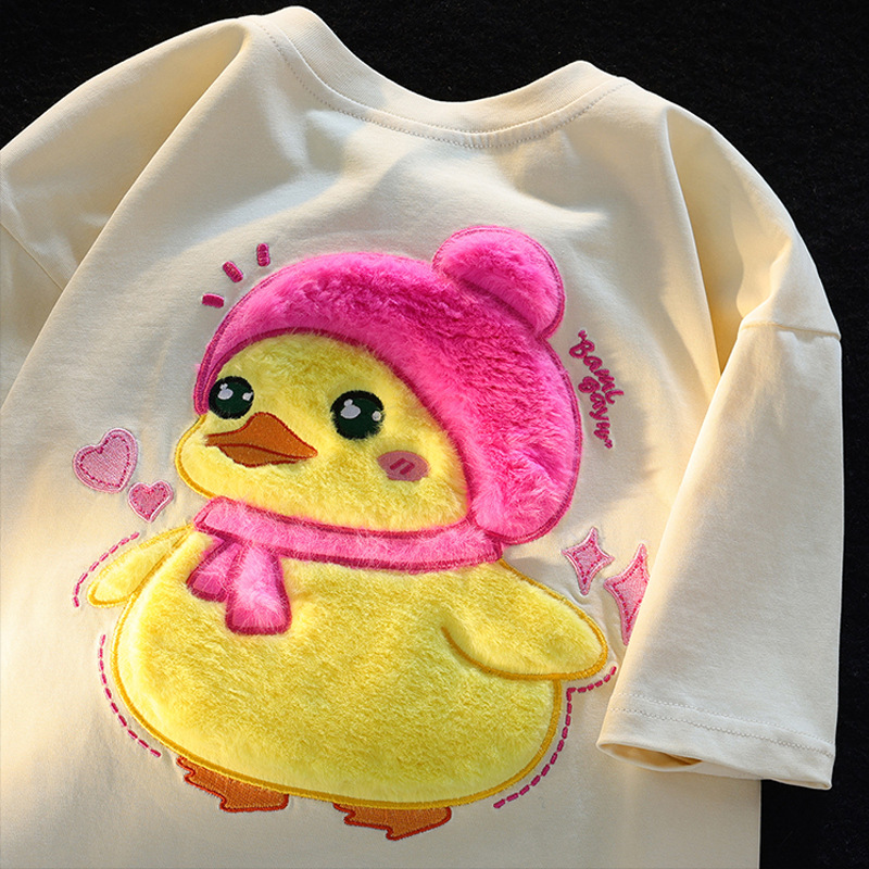植绒甜美毛绒兔子纯棉短袖t恤女宽松可爱日系chic独特上衣超好看