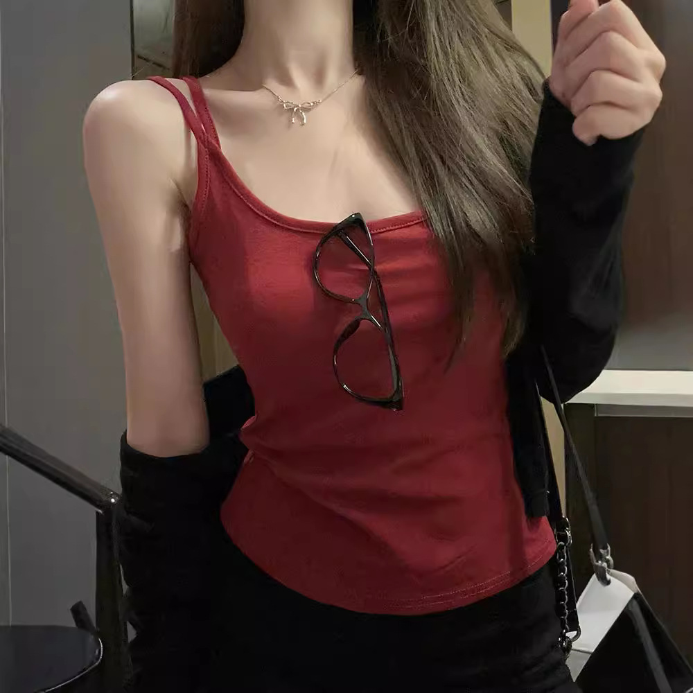 纯欲多巴胺褶皱美背2025夏季修身打底内搭小吊带美背背心女外穿