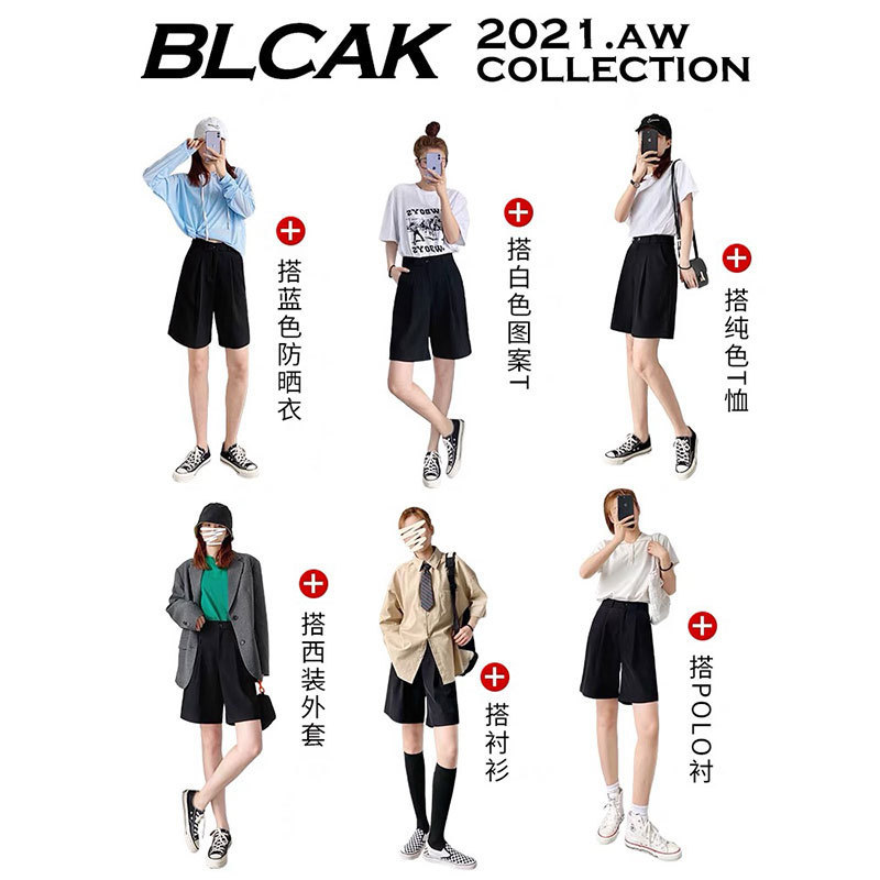 五分裤垂感西装短裤女夏季宽松显瘦外穿超高腰5分a字阔腿直筒中裤