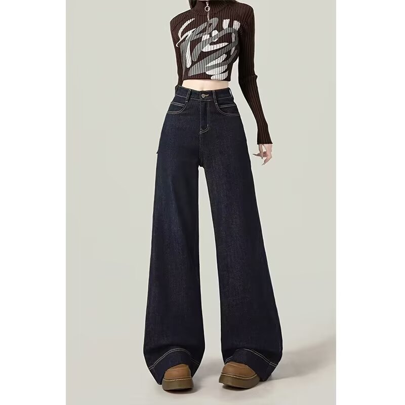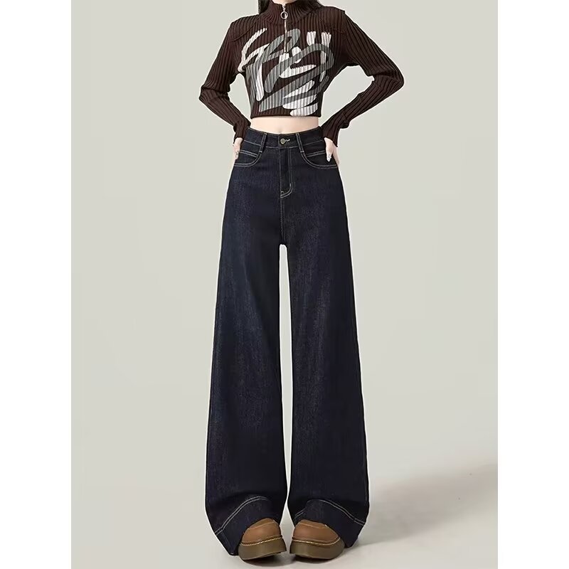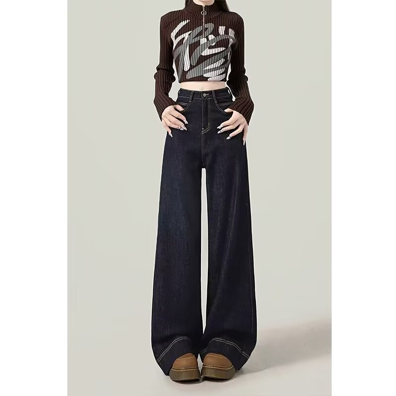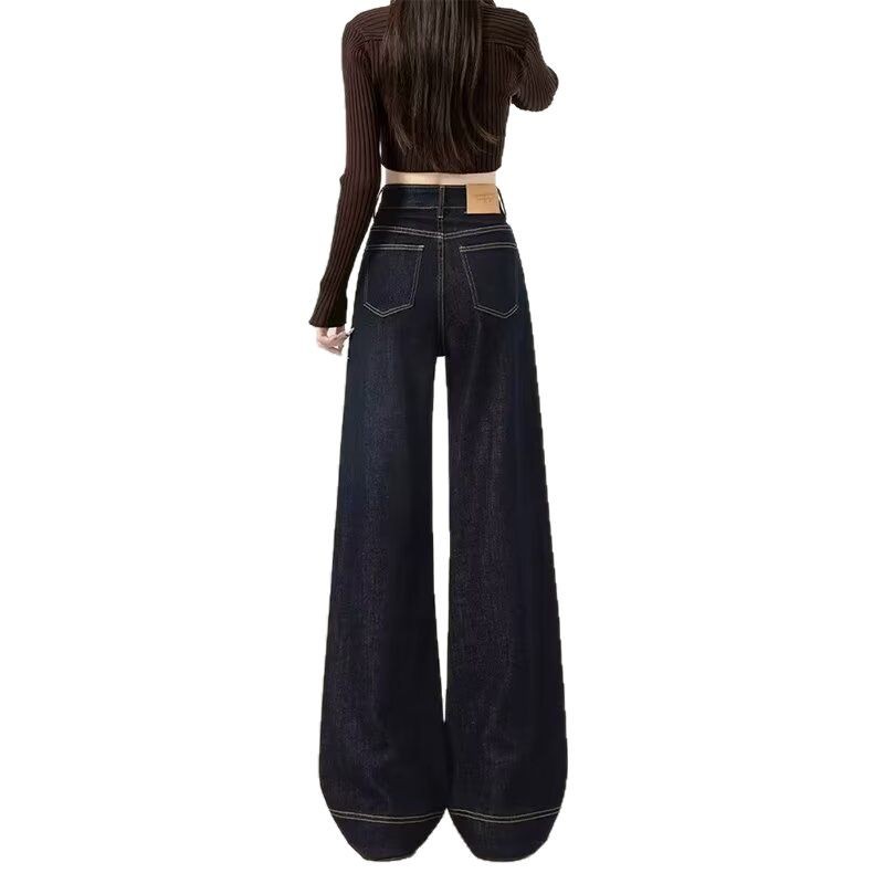 大码设计感小众微喇叭牛仔裤女2025春季胖mm宽松显瘦阔腿直筒裤