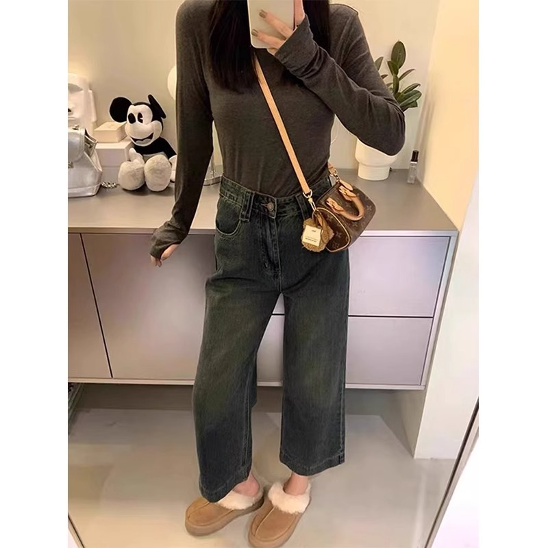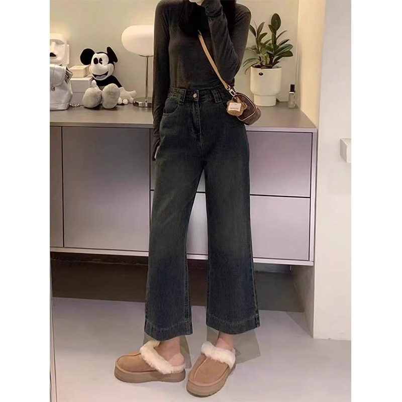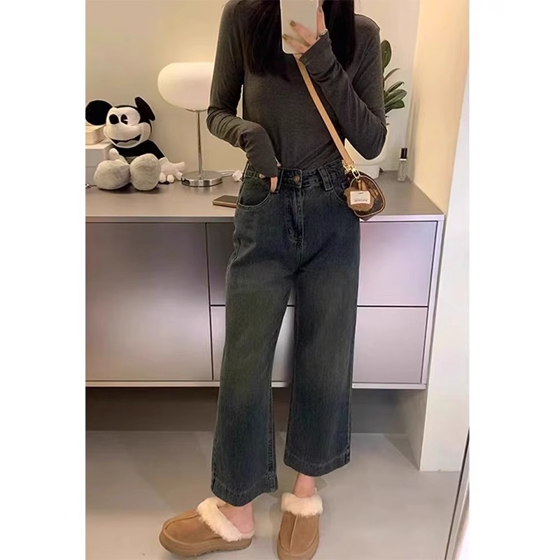 2025春夏大码九分直筒牛仔裤女胖mm梨形身材宽松高腰显瘦阔腿裤子
