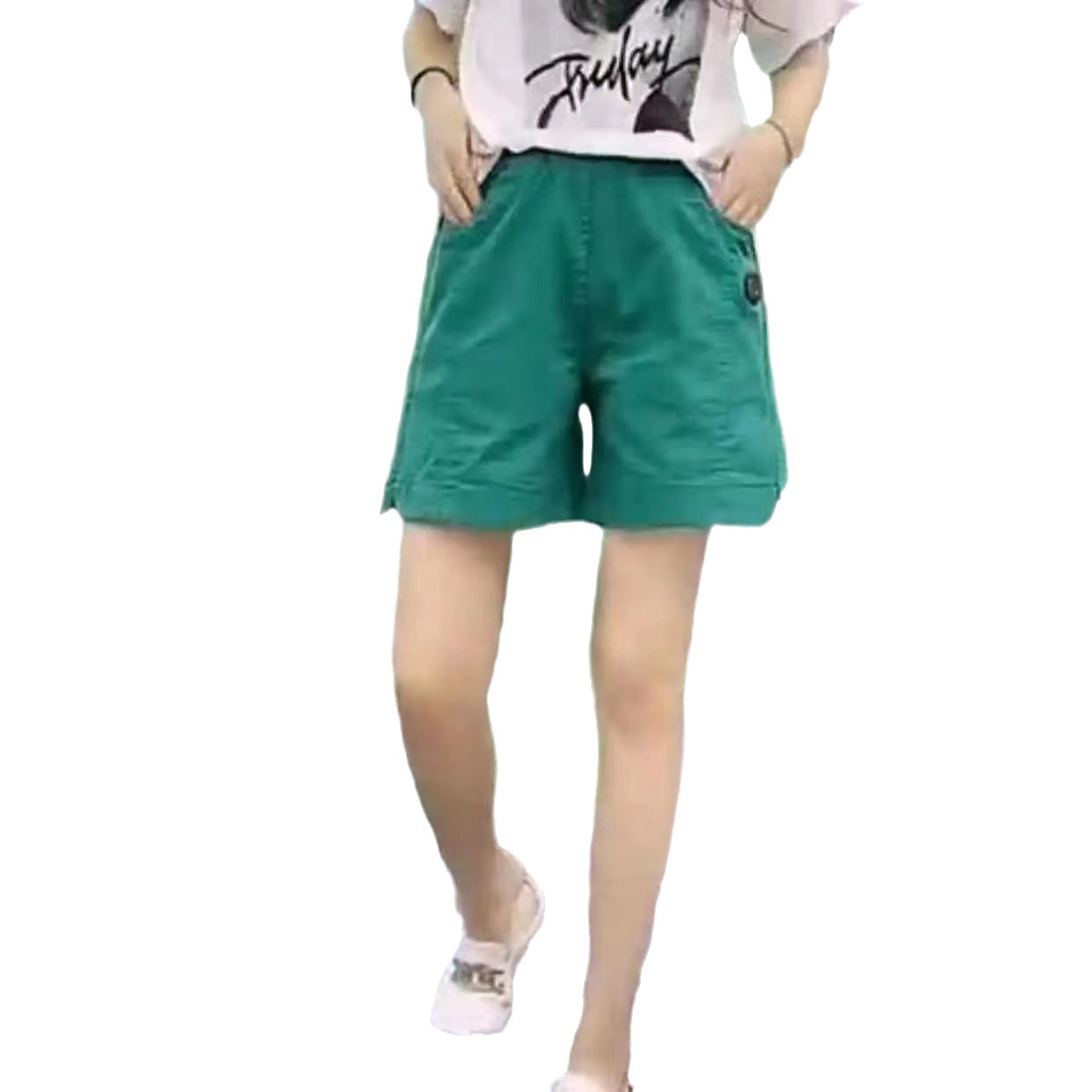 新款短裤女夏黑色高腰宽松亚麻面料纯色简约运动阔腿五分裤子百搭