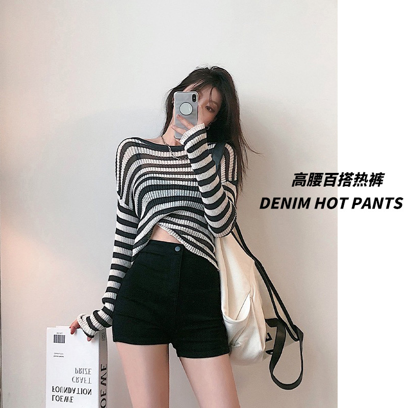 A字美式性感辣妹潮流三分热裤ins风高腰牛仔短裤女夏季薄款