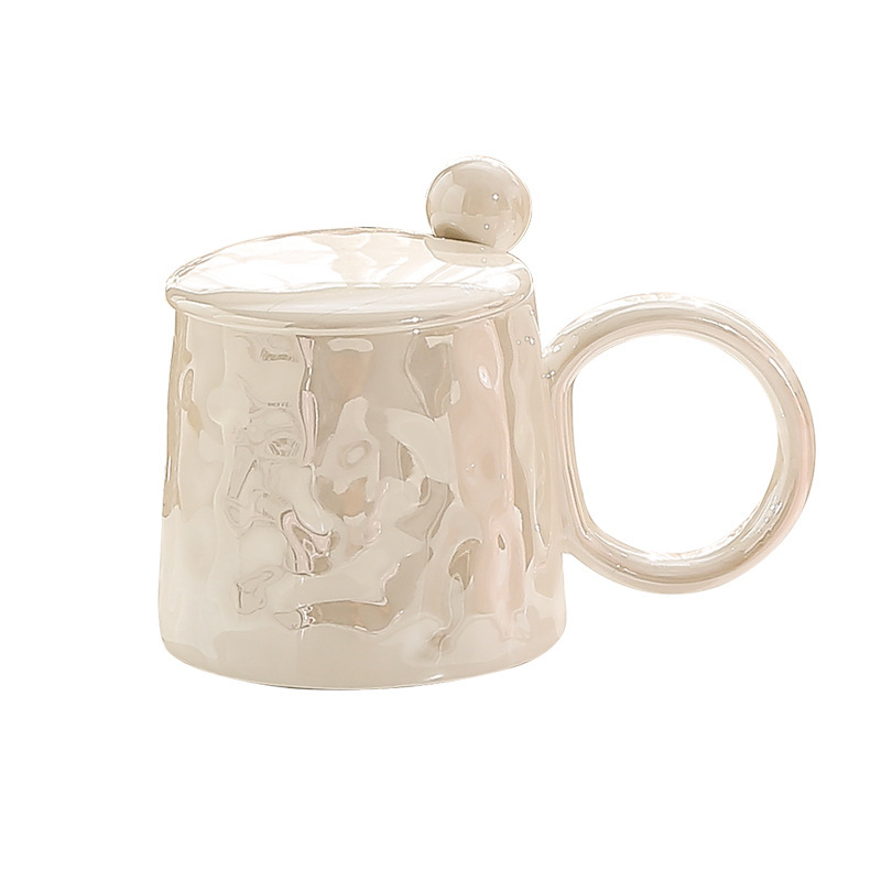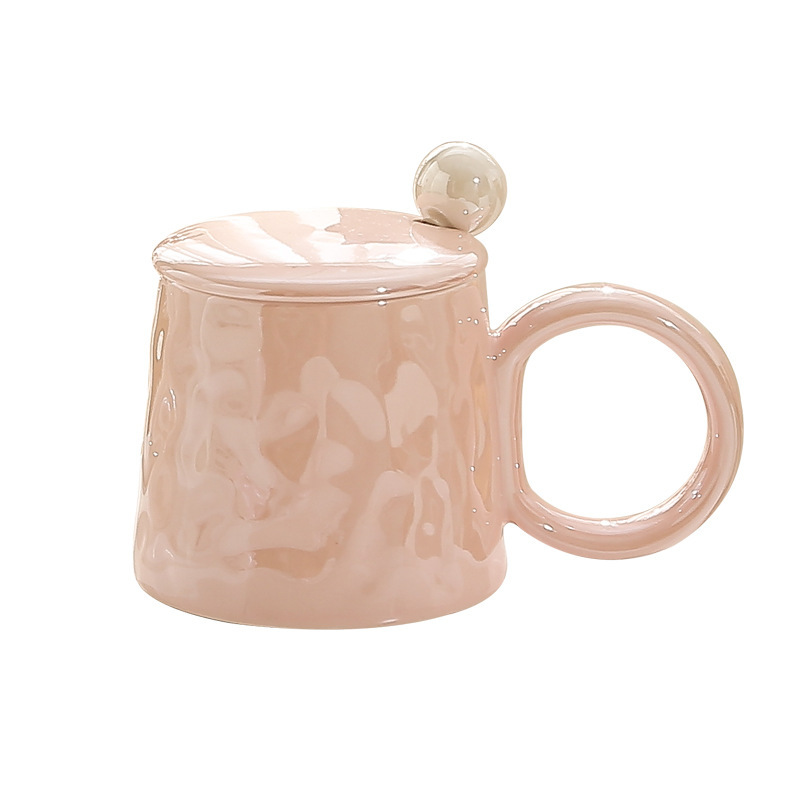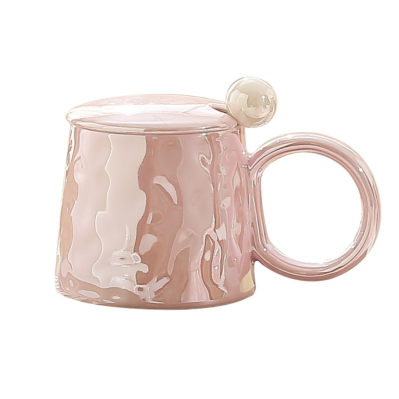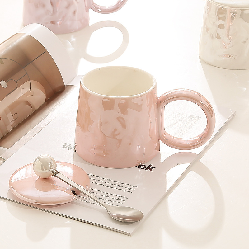 高颜值炫彩陶瓷杯ins带盖勺马克杯轻奢少女水杯家用情侣水杯