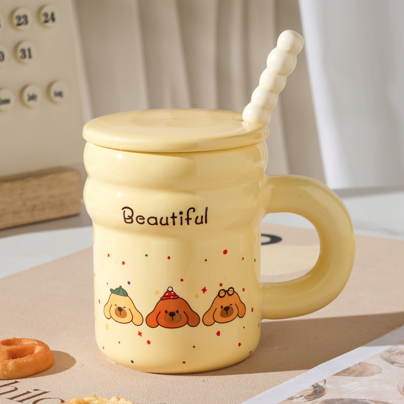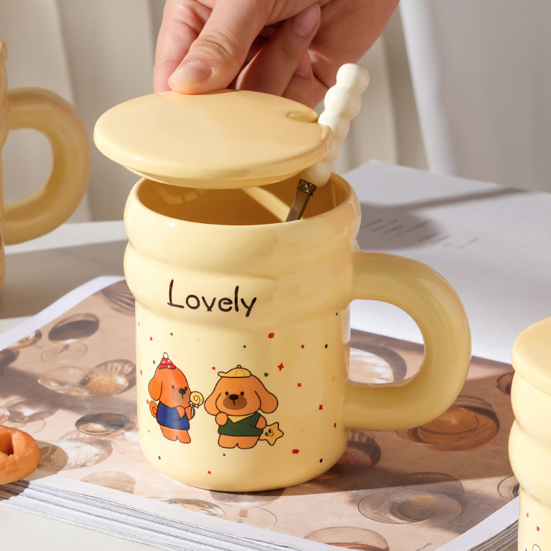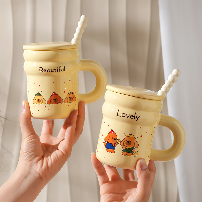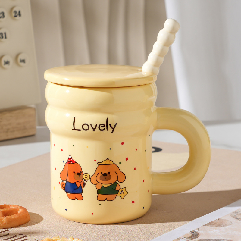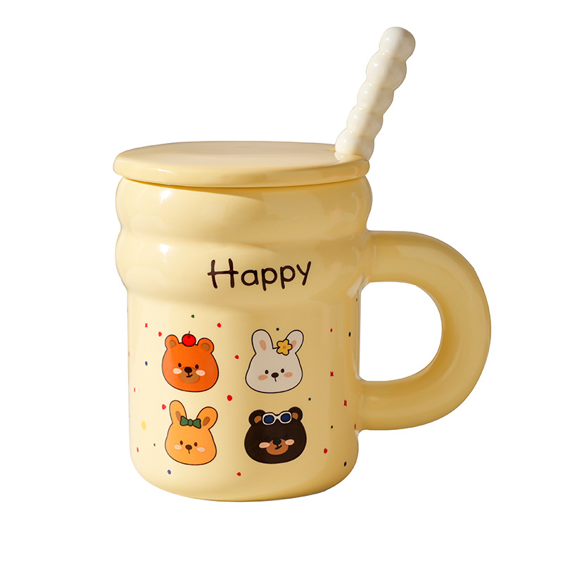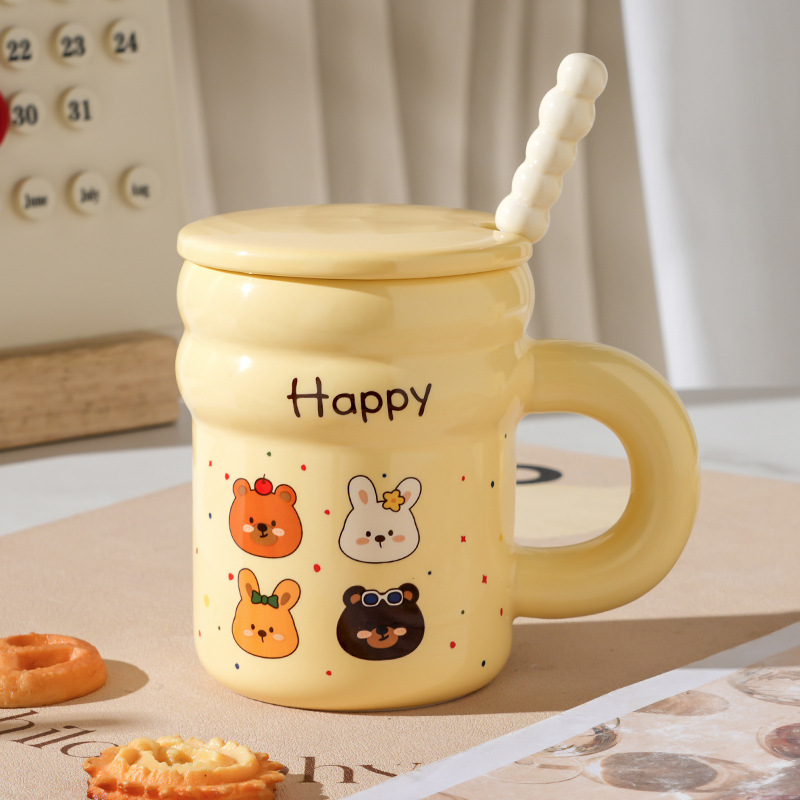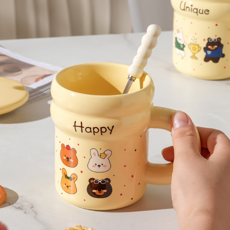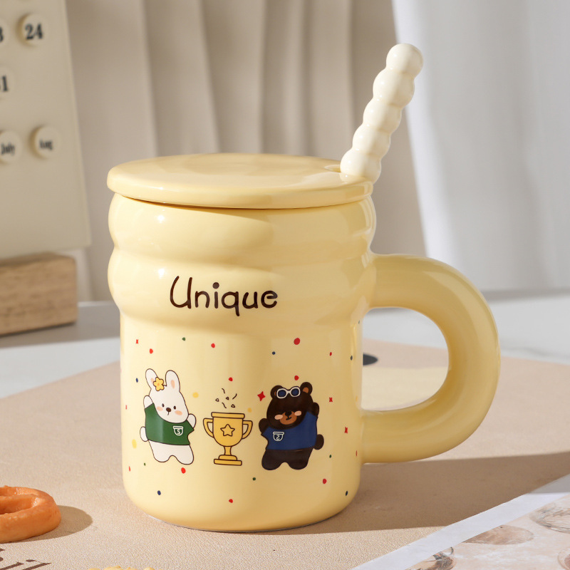 可爱卡通动物陶瓷杯带盖勺高颜值马克杯家用情侣水杯咖啡杯伴手礼
