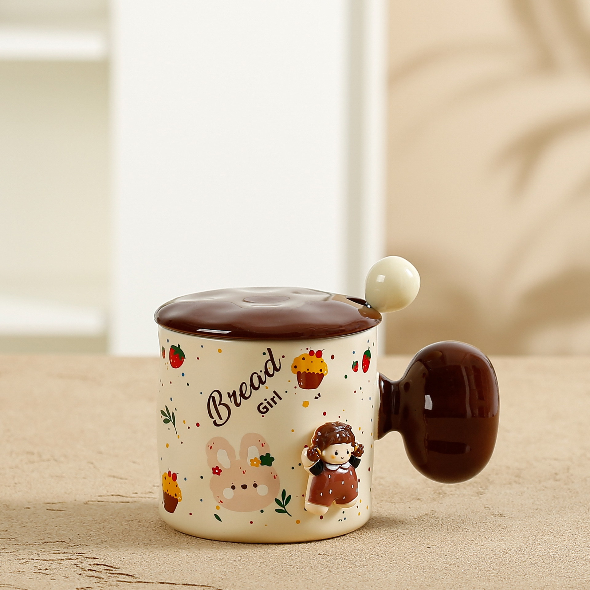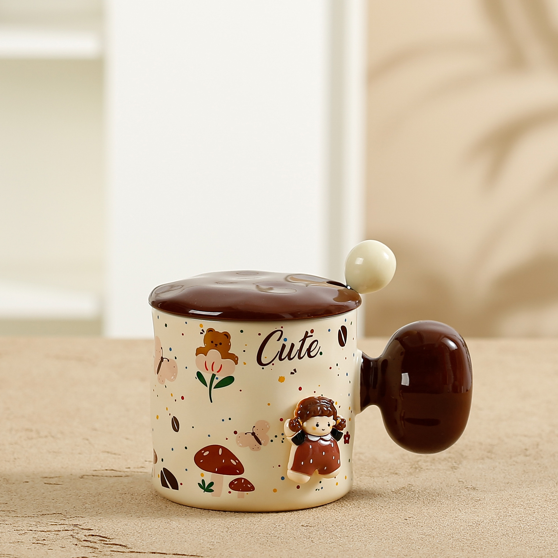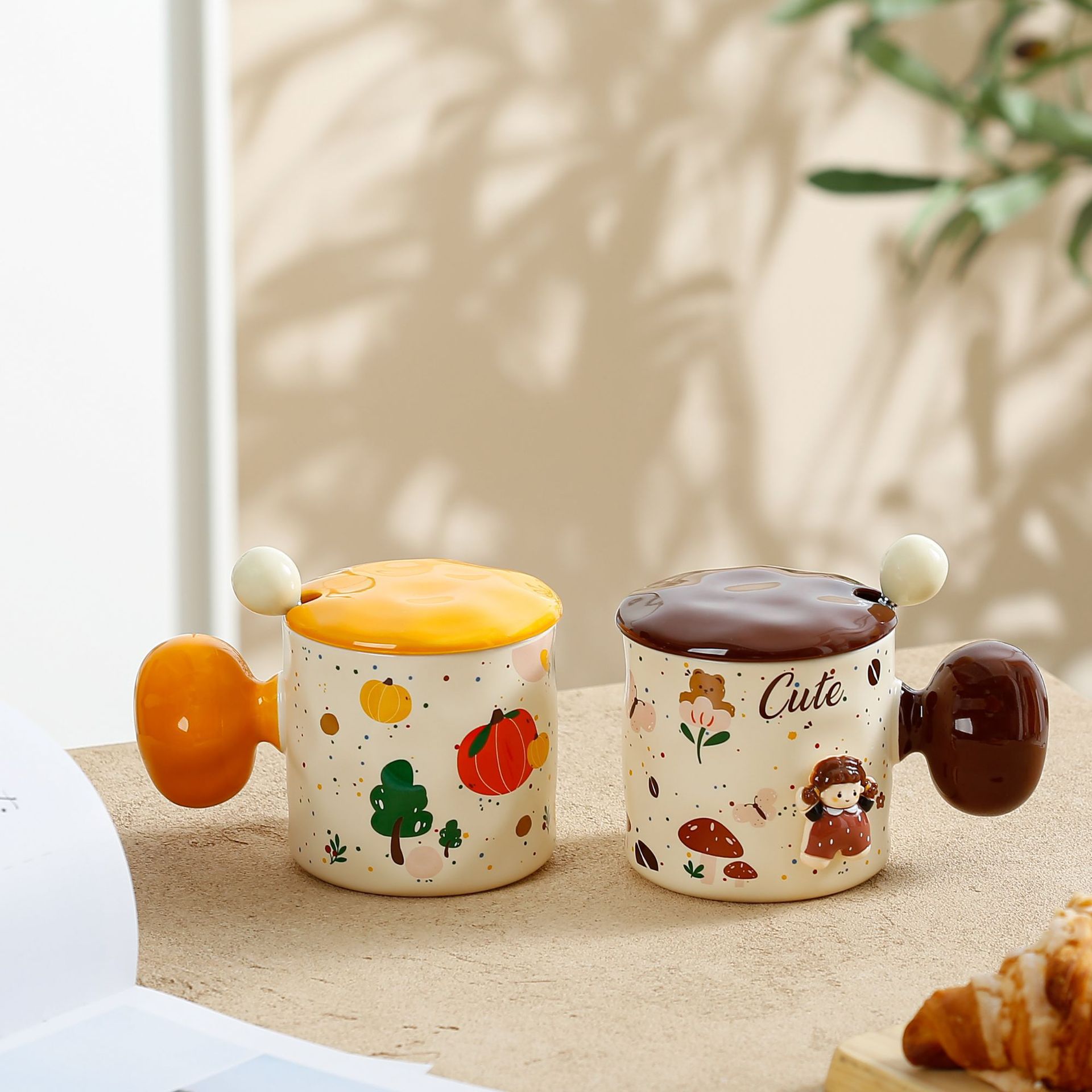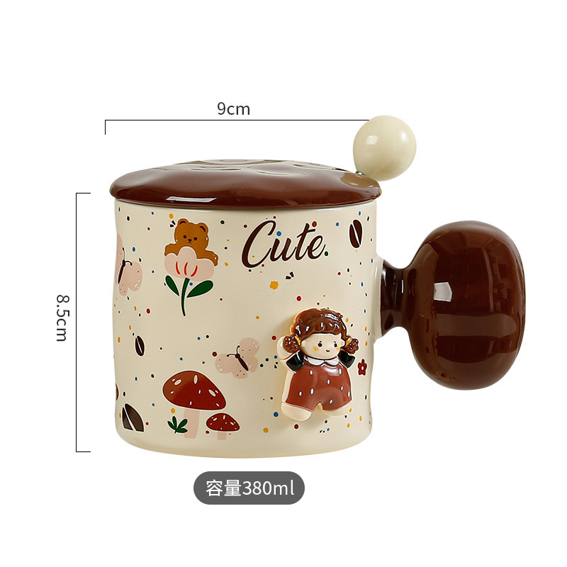 高颜值陶瓷杯带盖勺复古风马克杯童话女孩伴手礼物大容量水杯