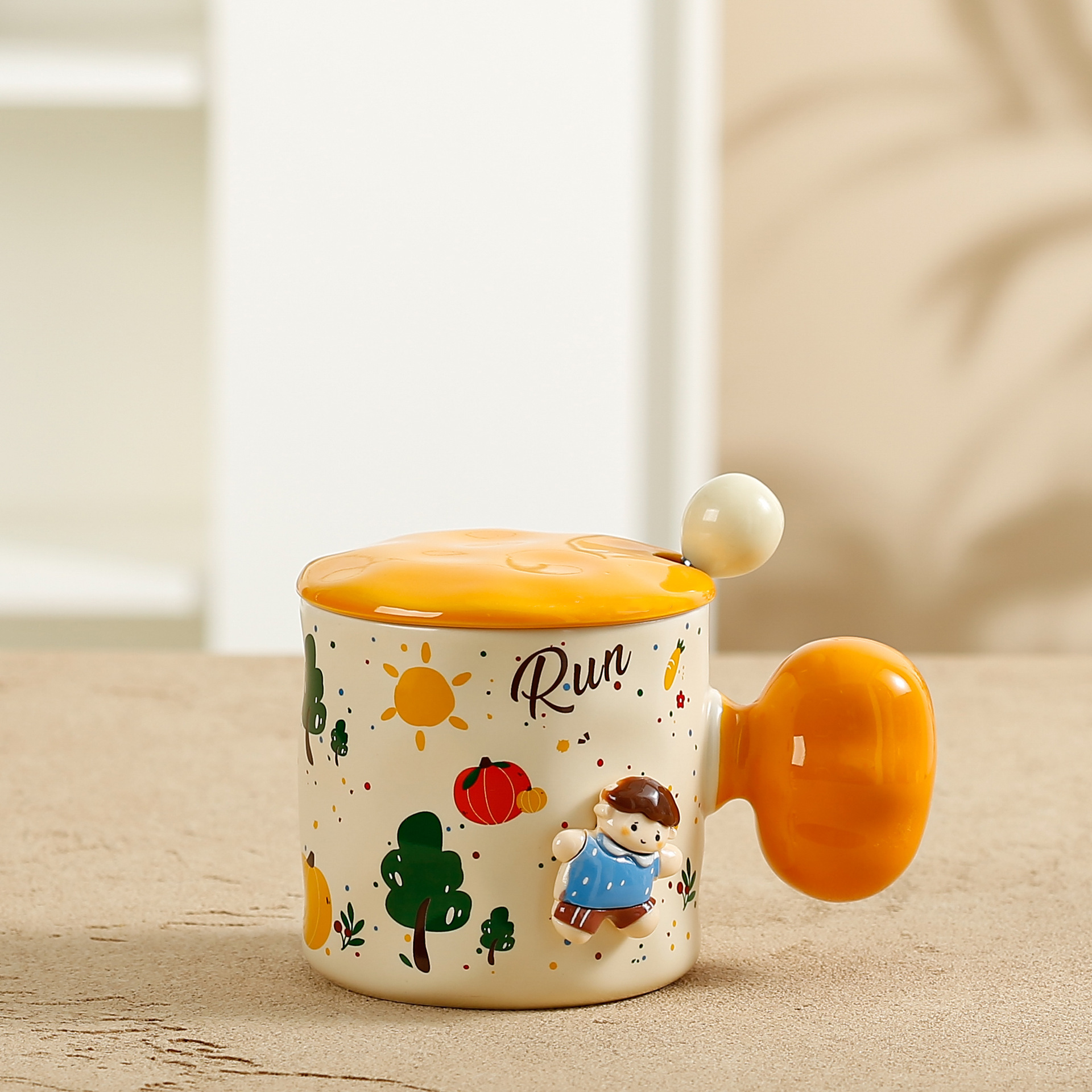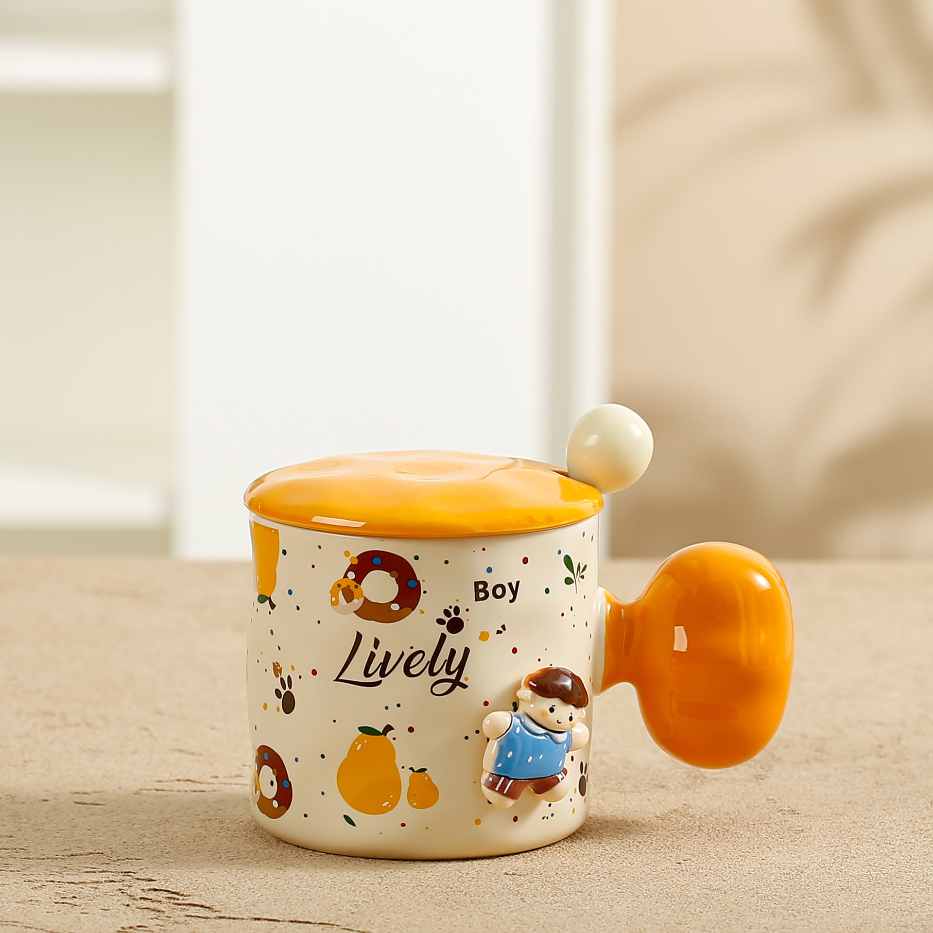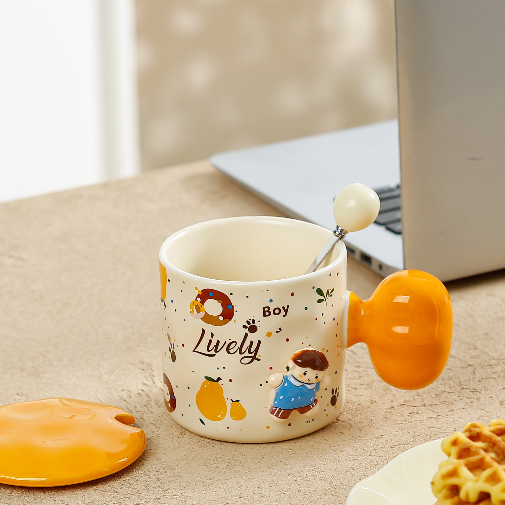高颜值陶瓷杯带盖勺复古风马克杯童话女孩伴手礼物大容量水杯
