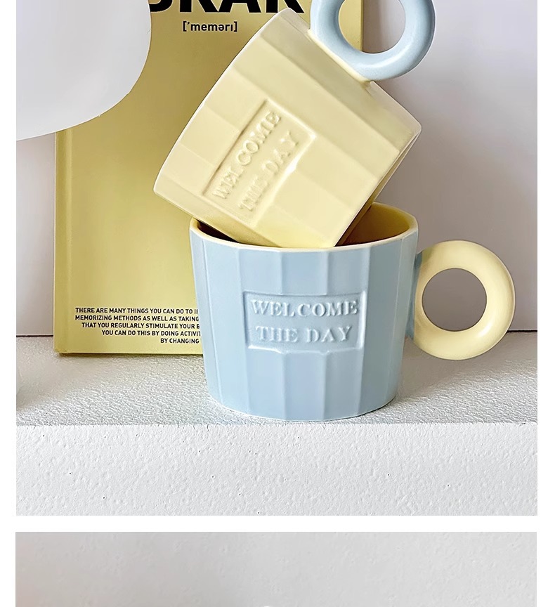 奶油风ins撞色马卡龙马克杯带盖勺陶瓷喝水杯子家用办公情侣学生