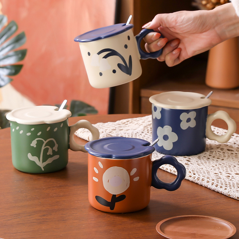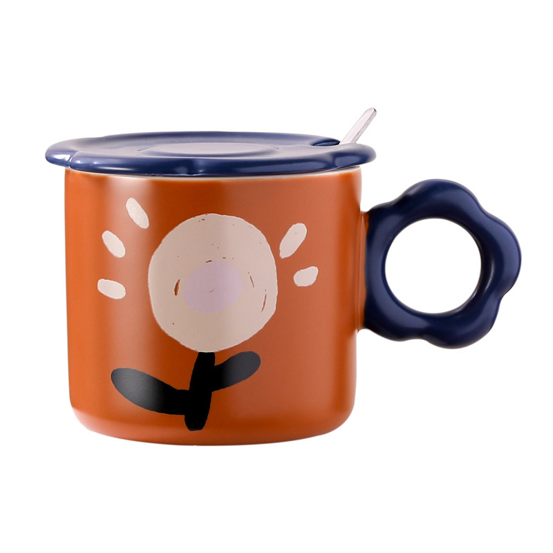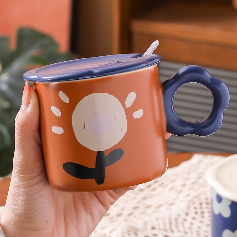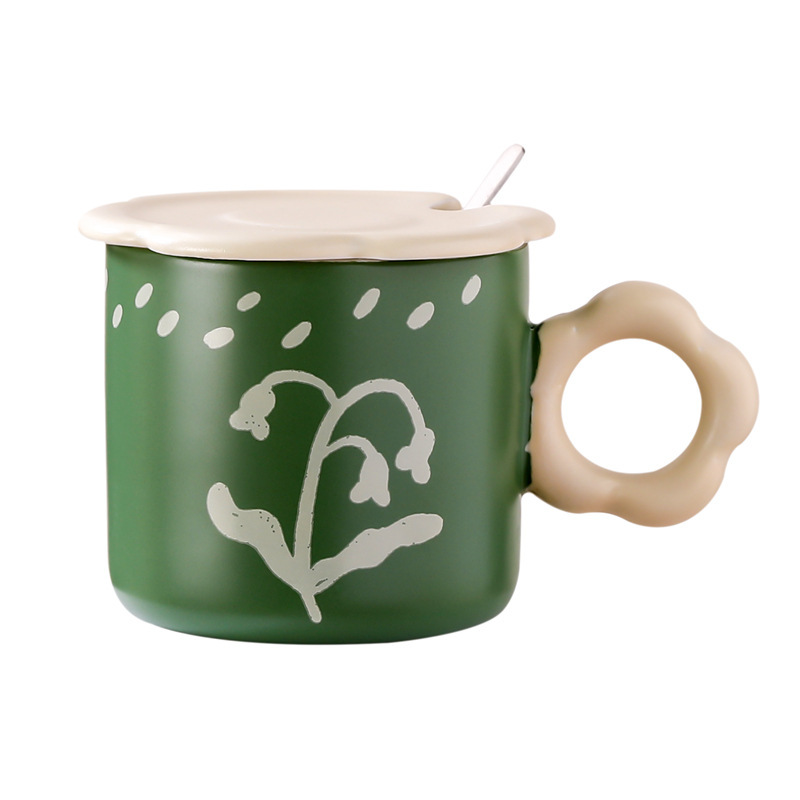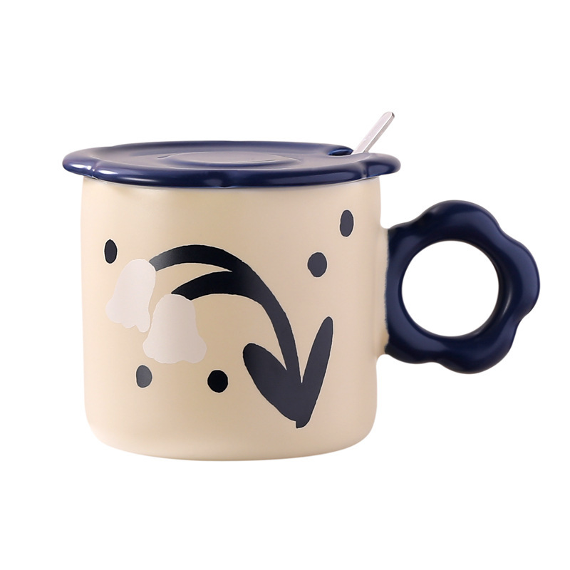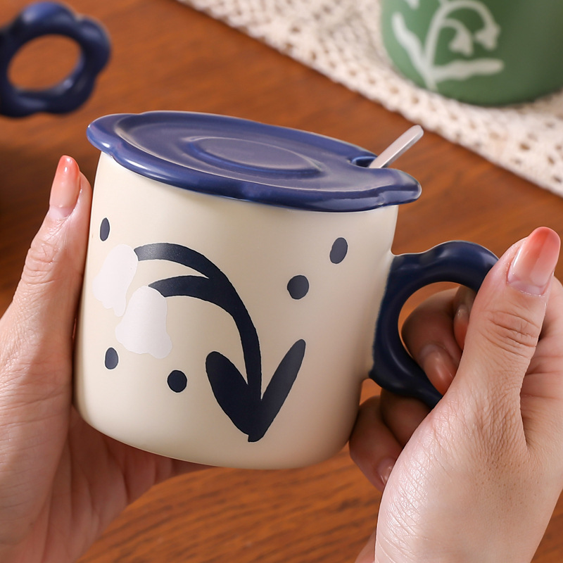 釉下彩带盖陶瓷马克杯咖啡杯女高颜值办公室喝水杯子女士网红水杯