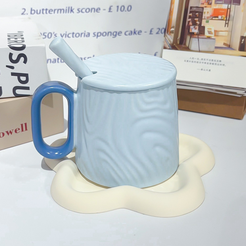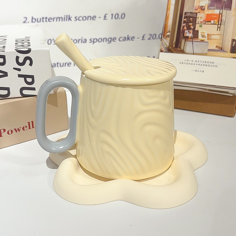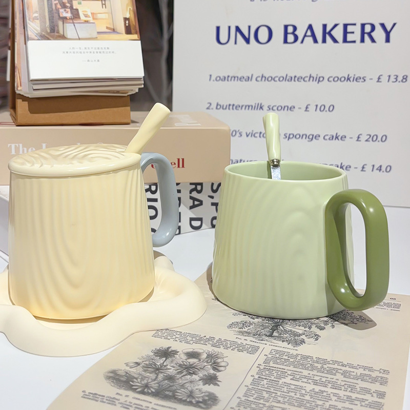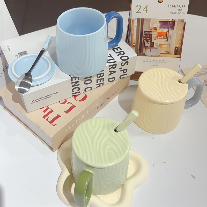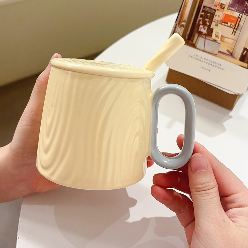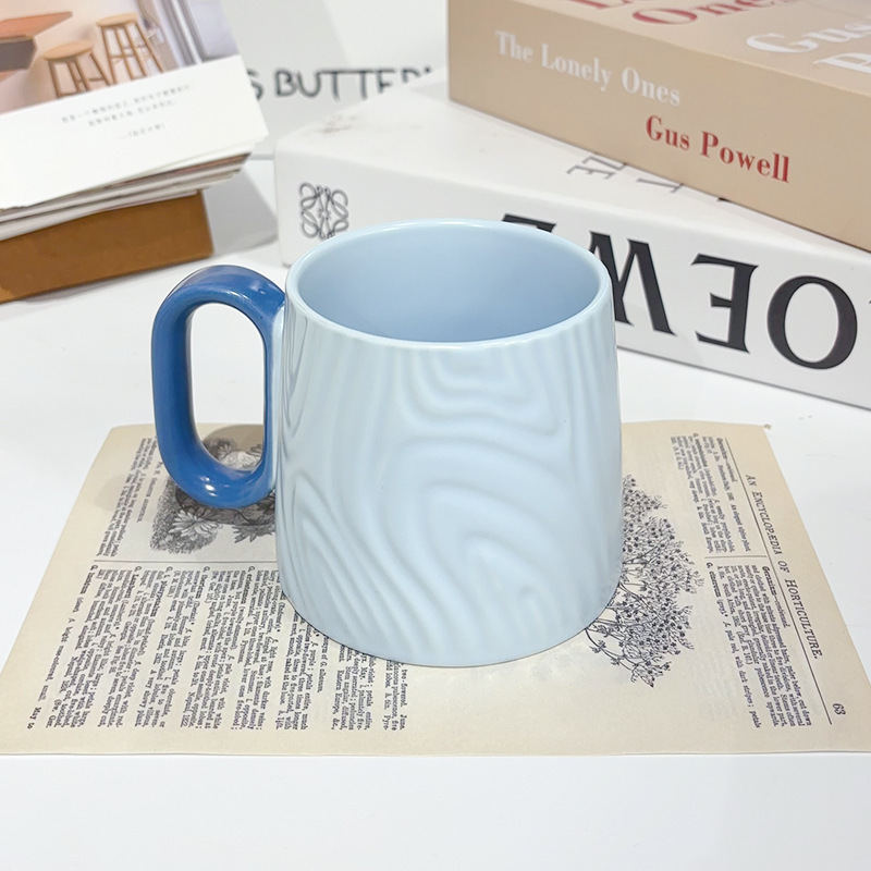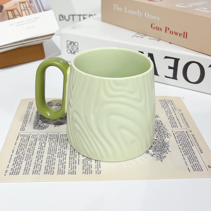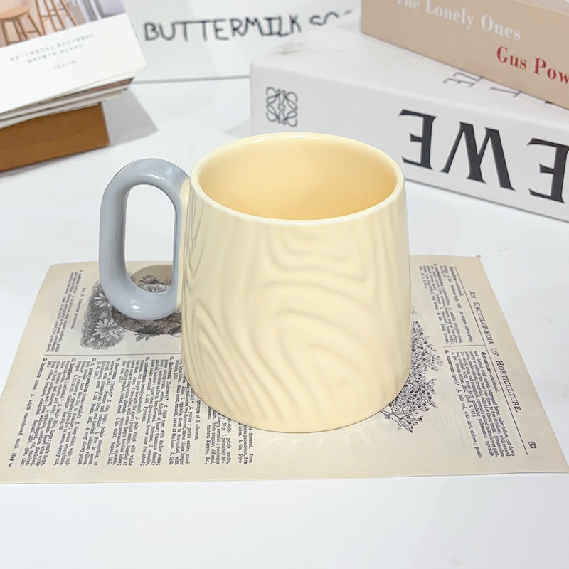 马卡龙陶瓷杯创意木纹马克杯家用可爱杯子高颜值女生办公杯早餐杯
