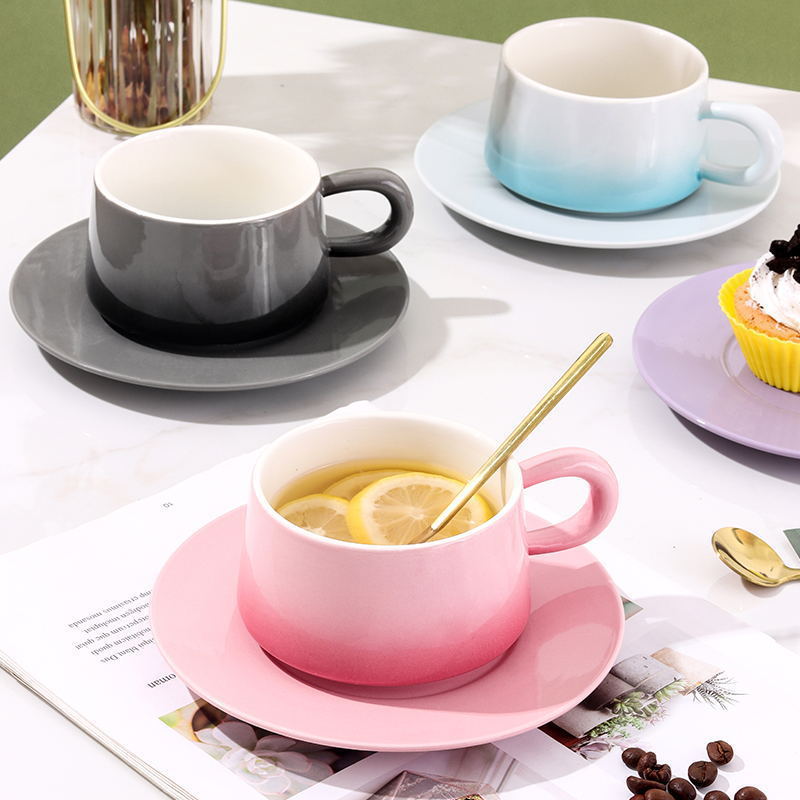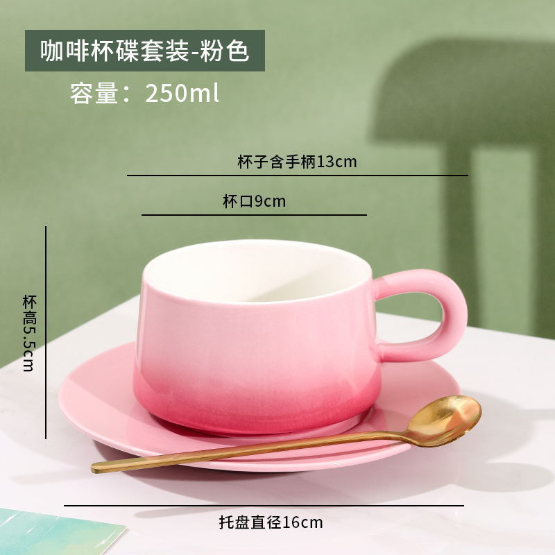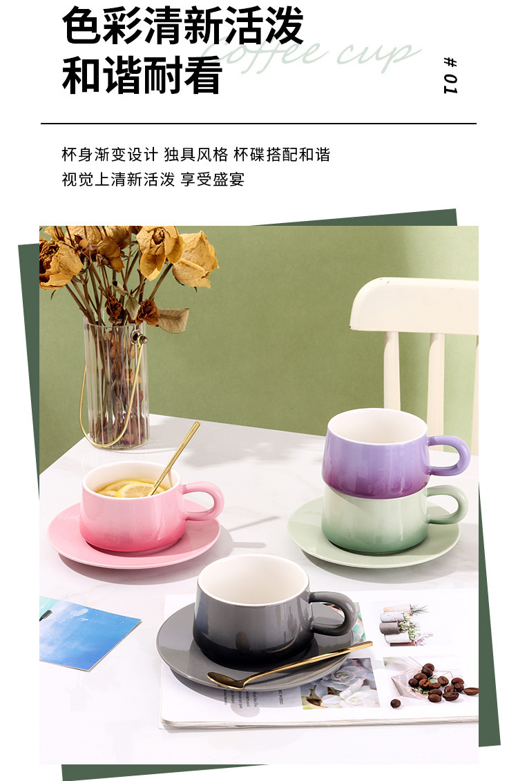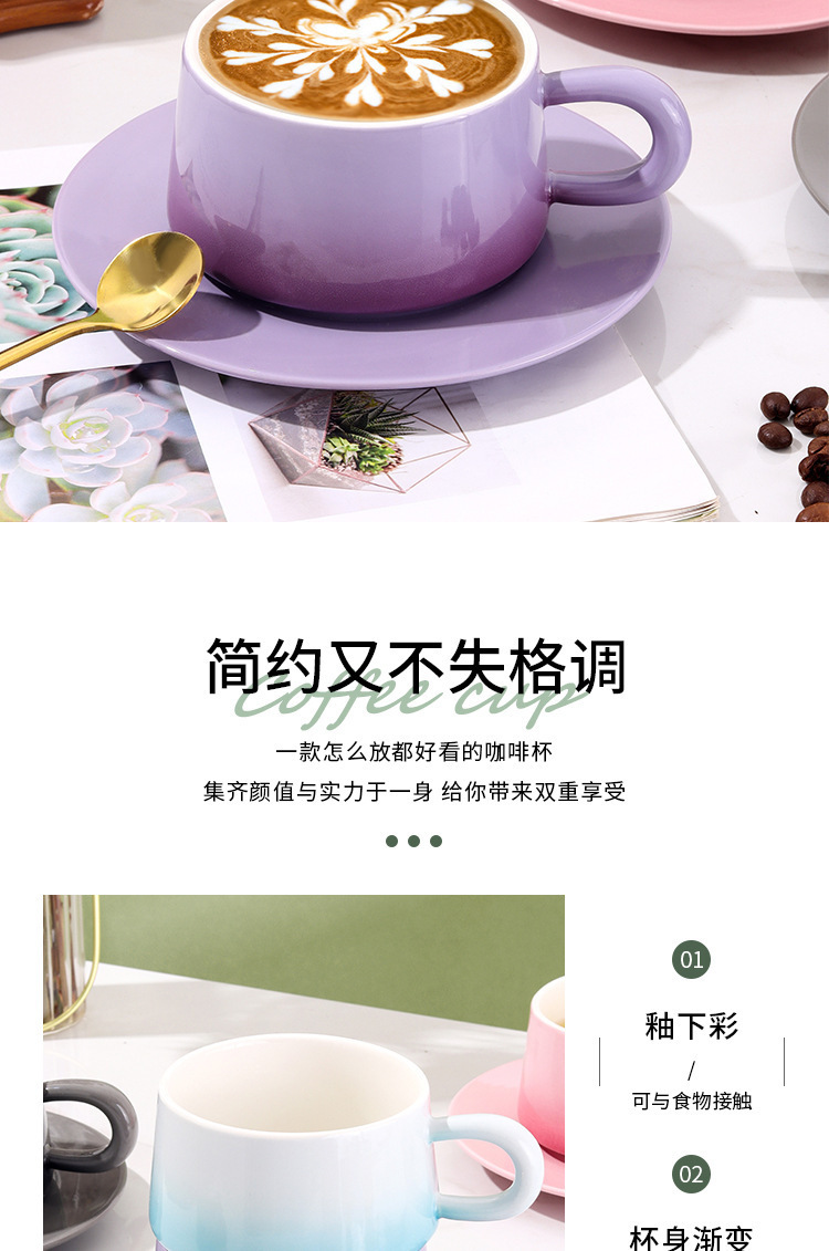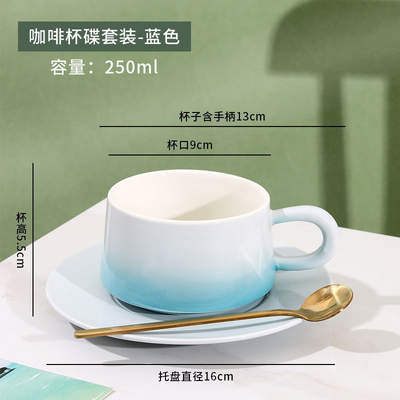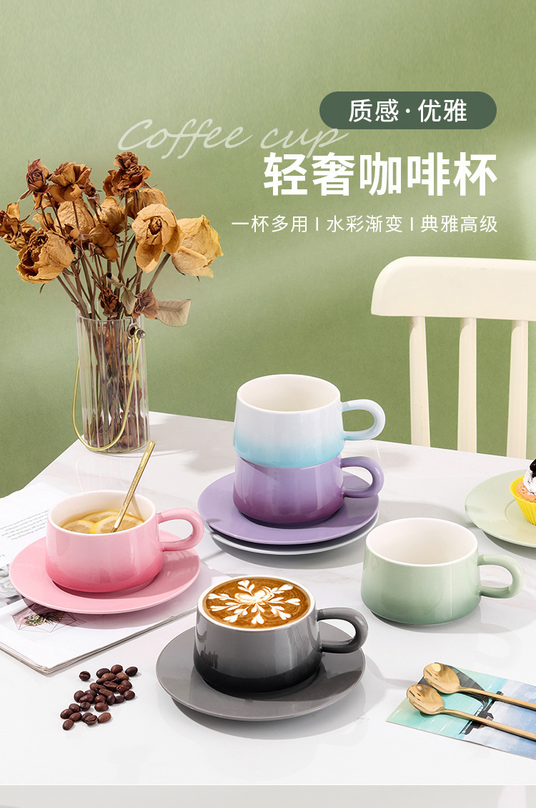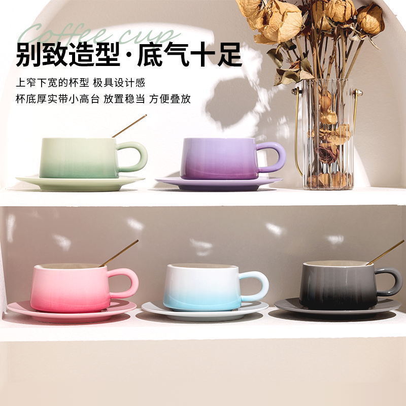渐变陶瓷咖啡杯碟套装高颜值办公室下午茶杯家用马克杯轻奢花茶杯