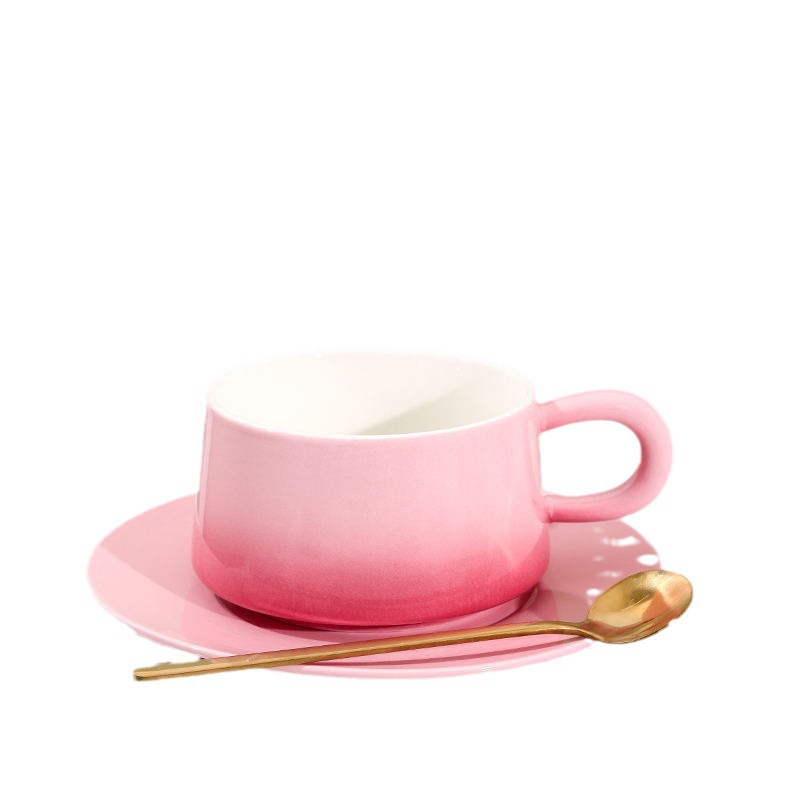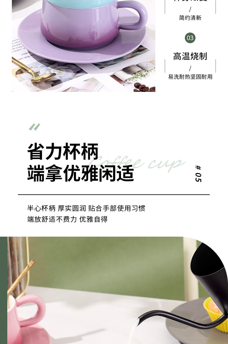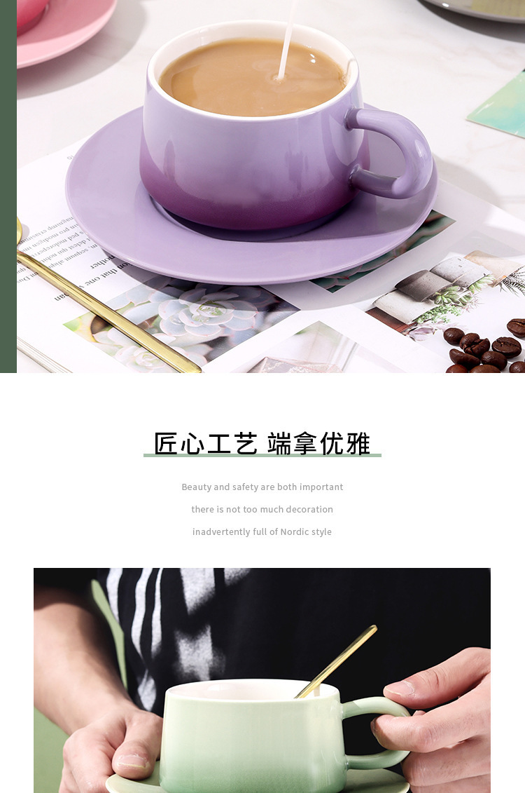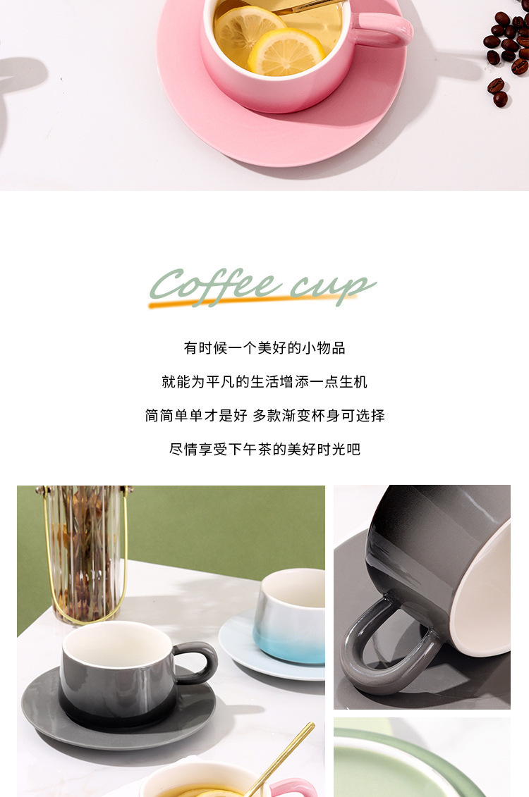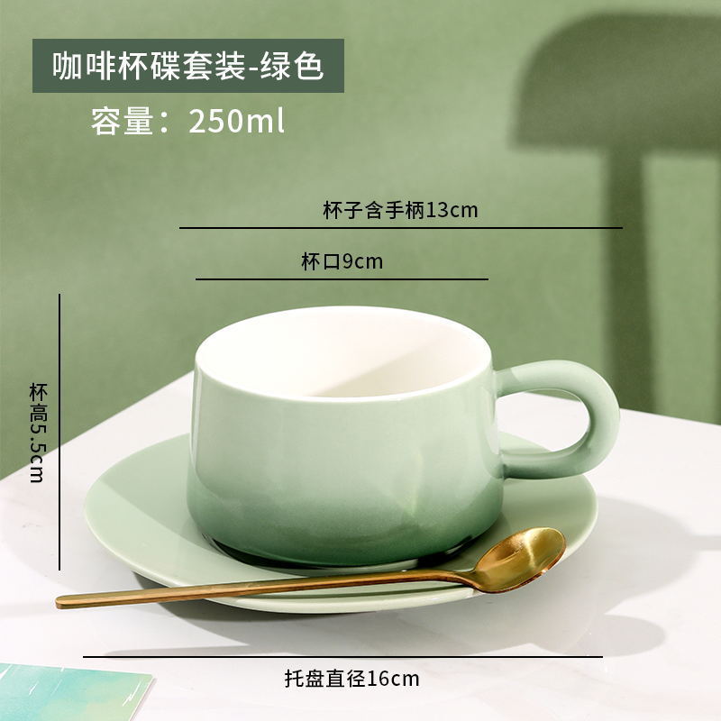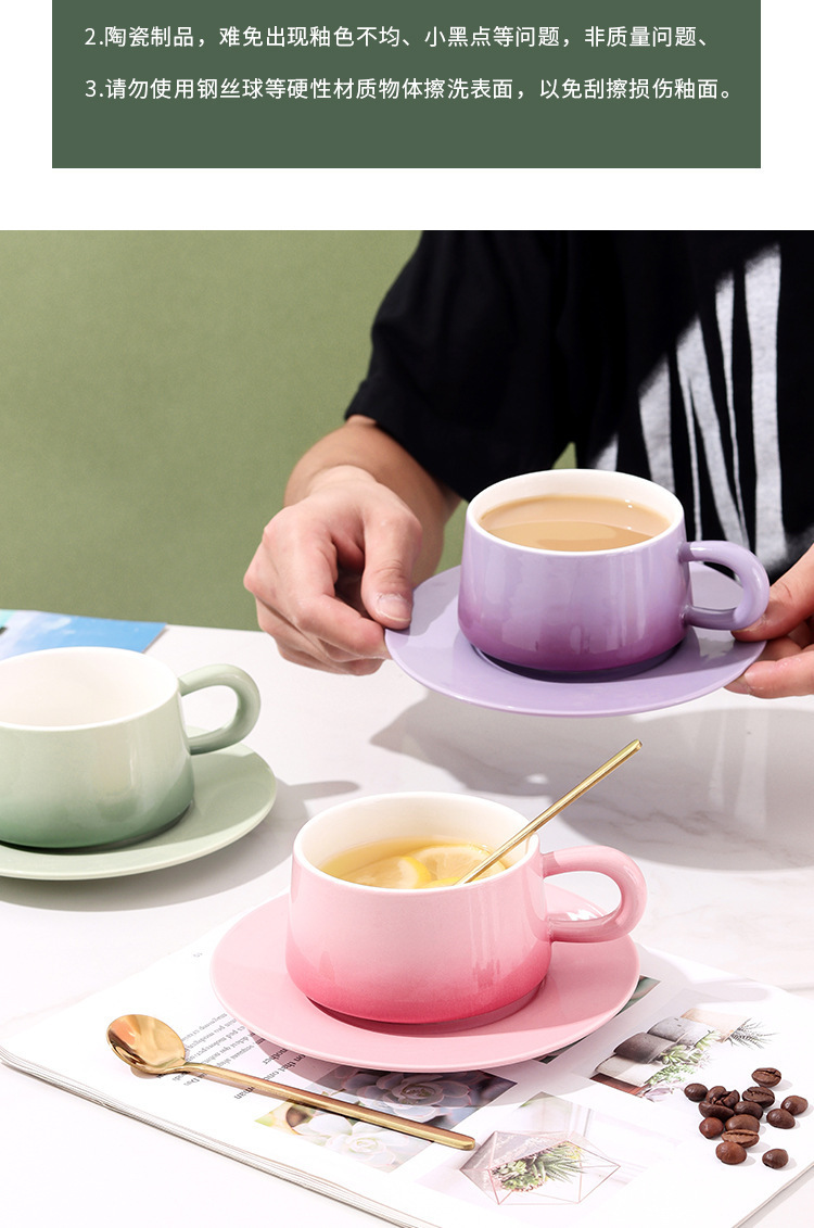 渐变陶瓷咖啡杯碟套装高颜值办公室下午茶杯家用马克杯轻奢花茶杯