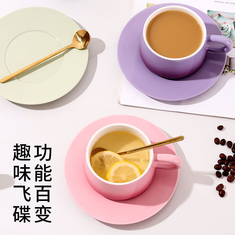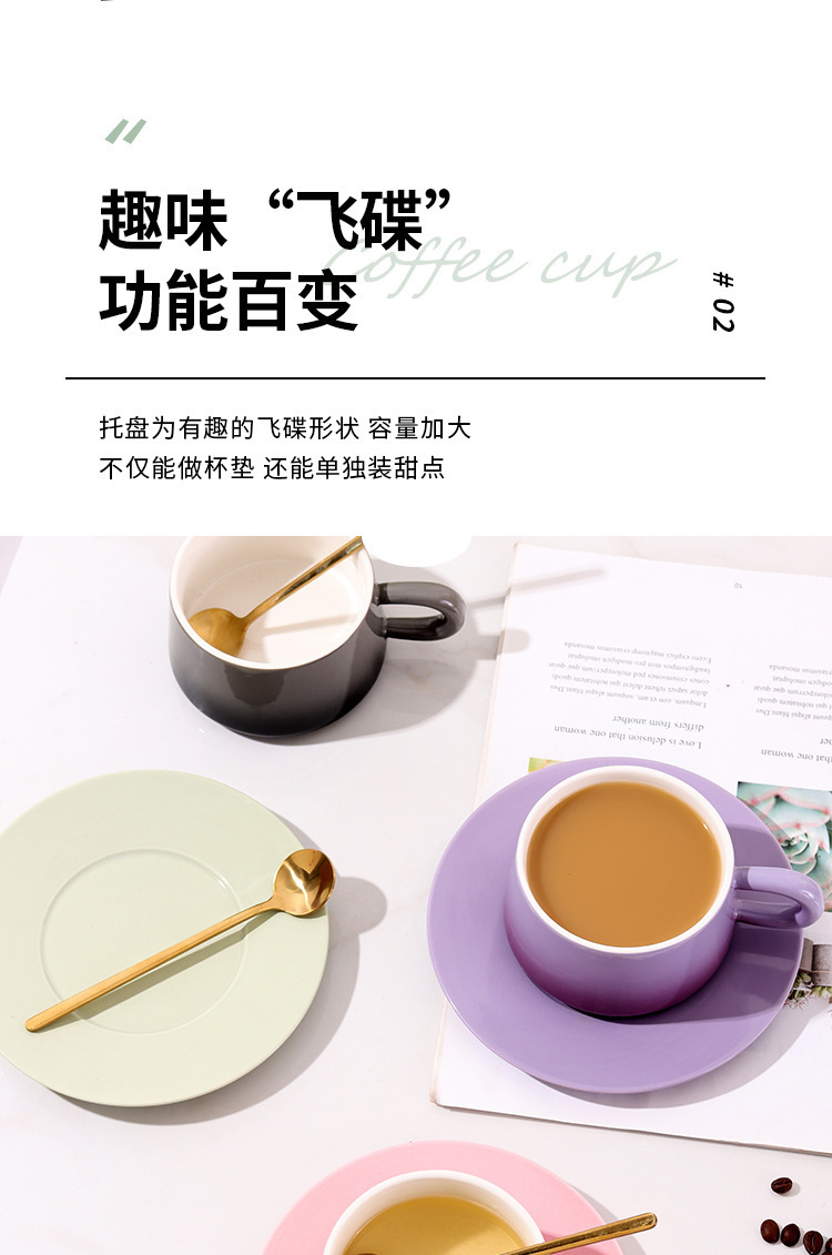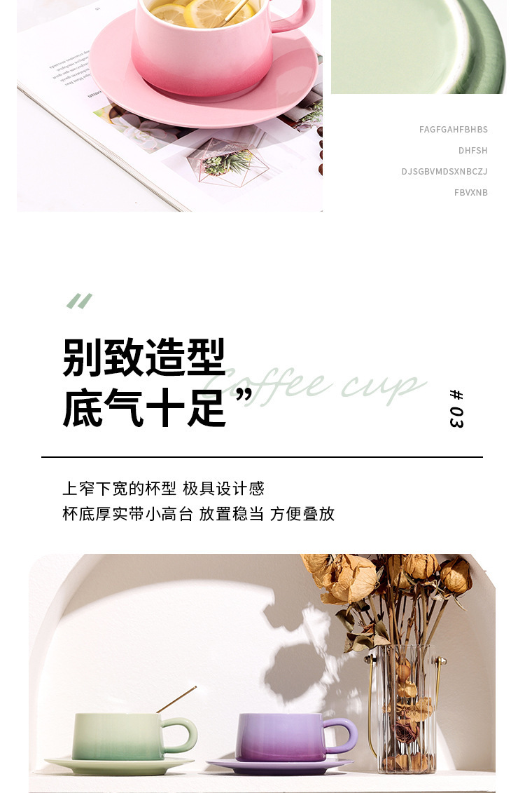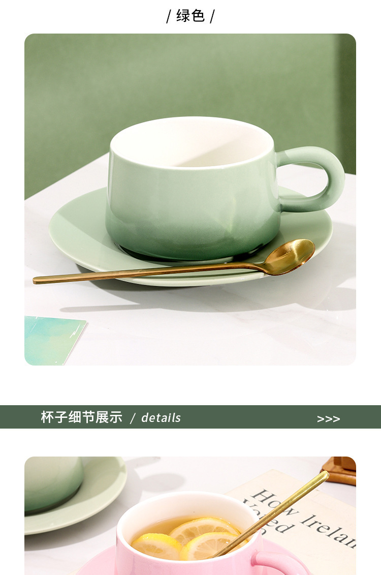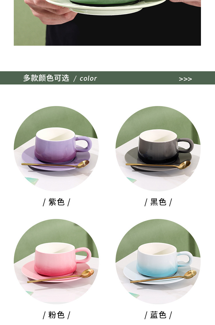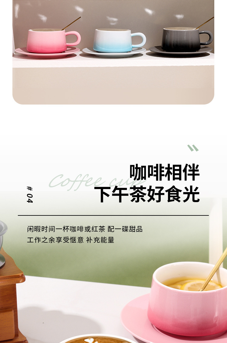 渐变陶瓷咖啡杯碟套装高颜值办公室下午茶杯家用马克杯轻奢花茶杯