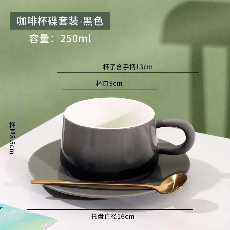 渐变黑咖啡杯+碟+金勺