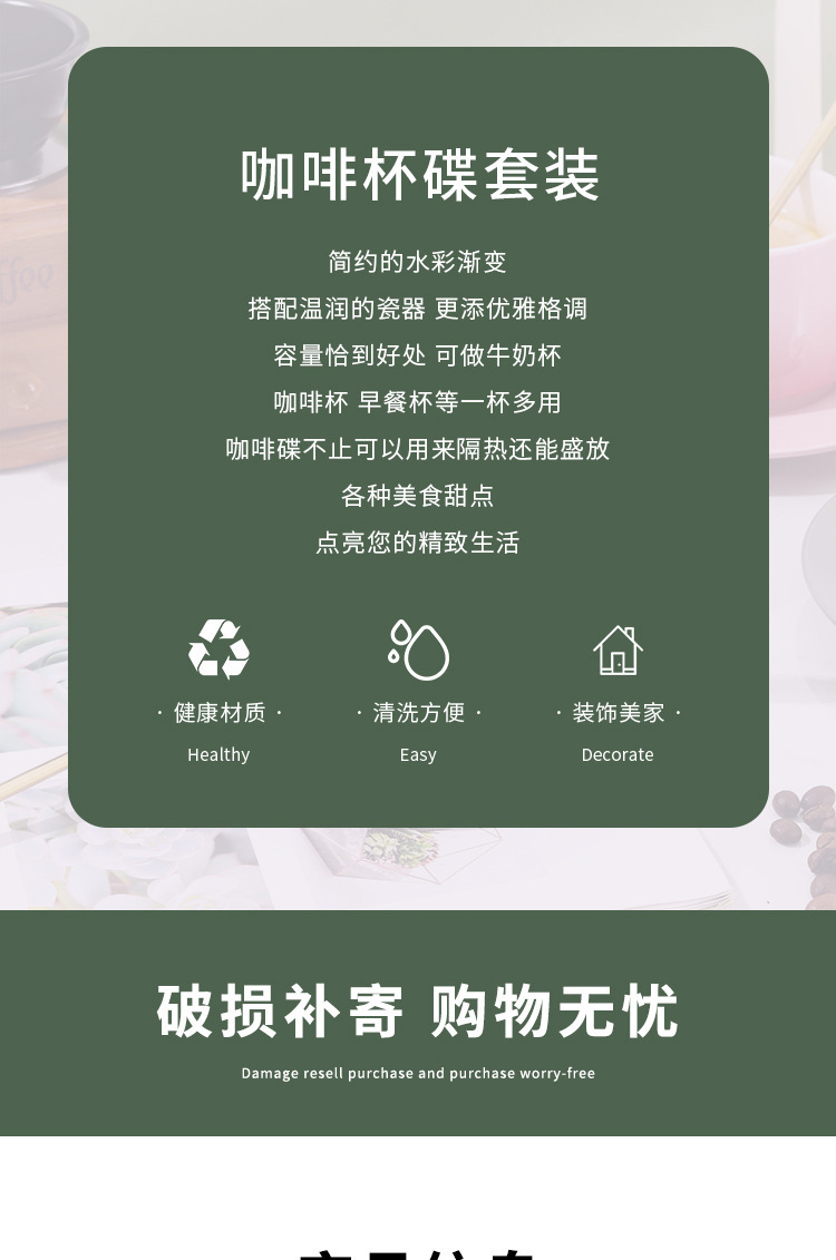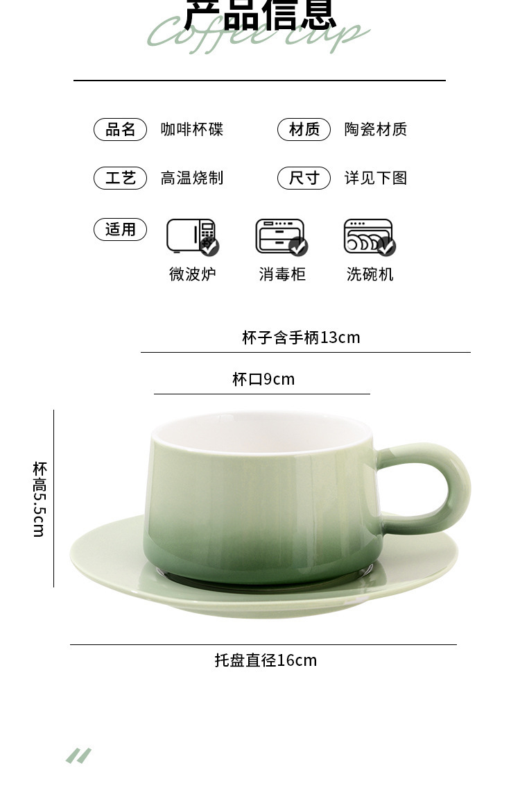 渐变绿咖啡杯+碟+金勺