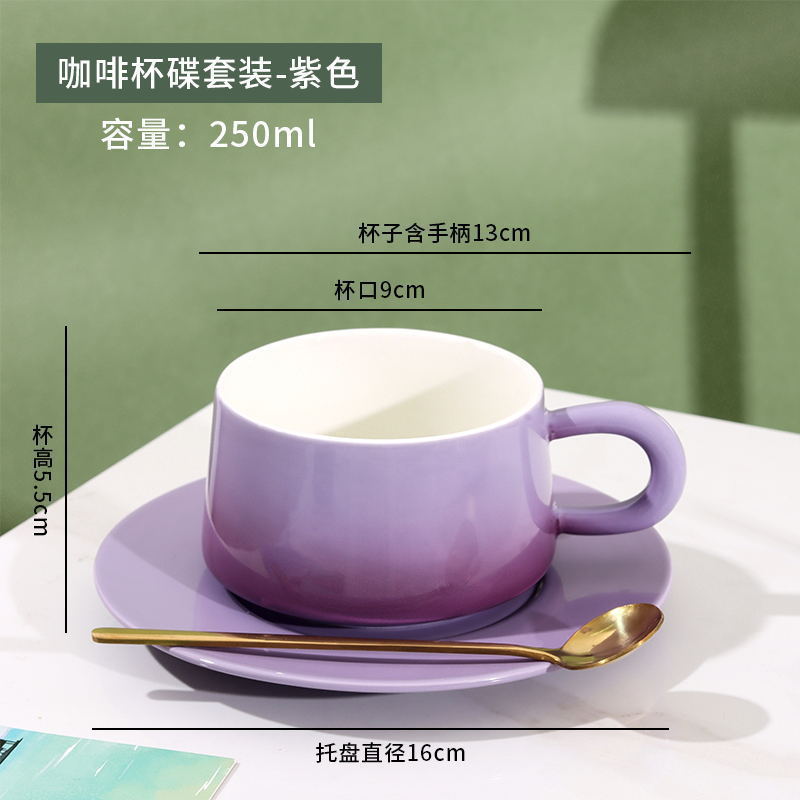 渐变紫咖啡杯+碟+金勺