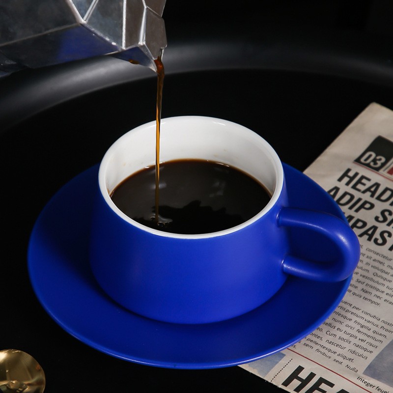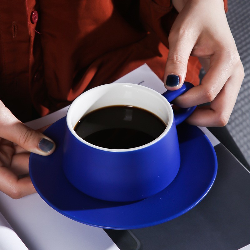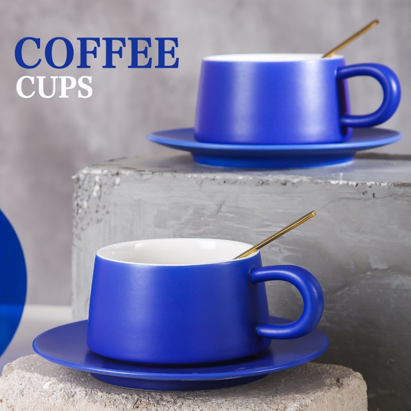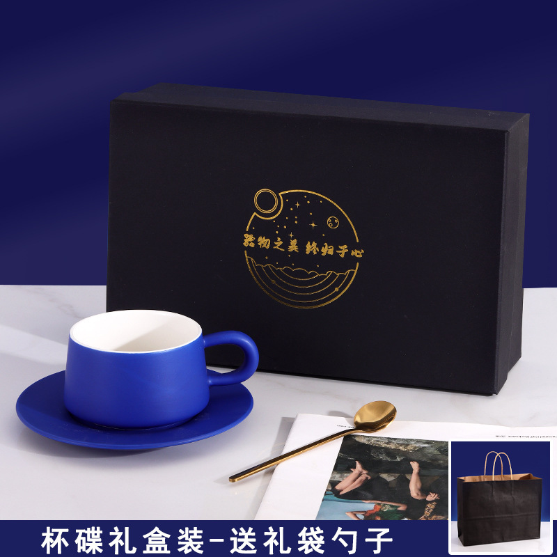 克莱因蓝咖啡杯碟套装INS风高档咖啡杯情侣马克杯高颜值伴手礼