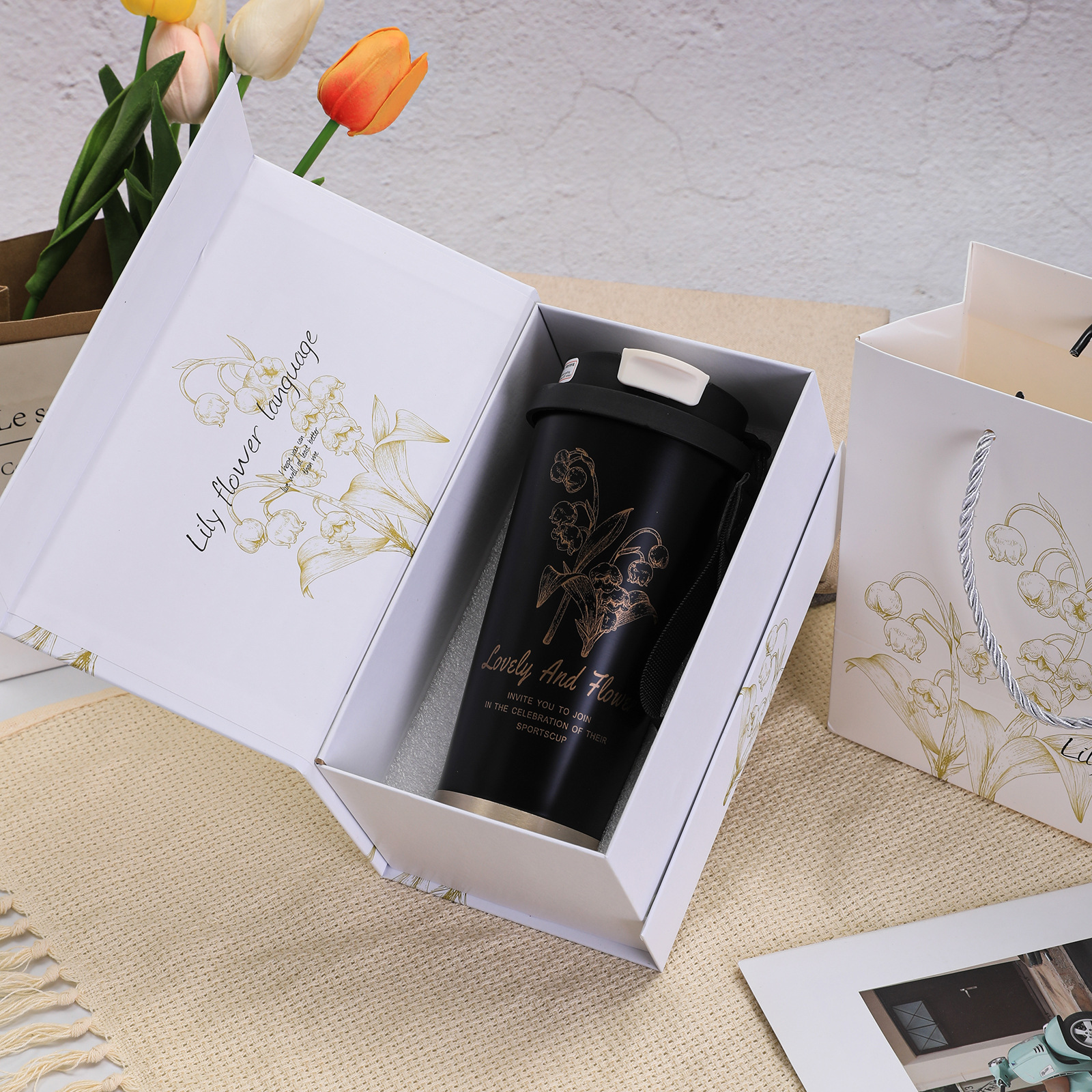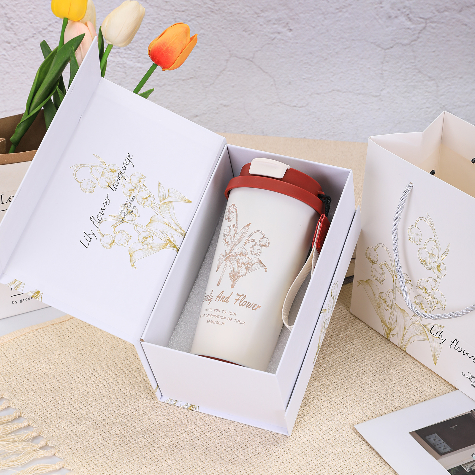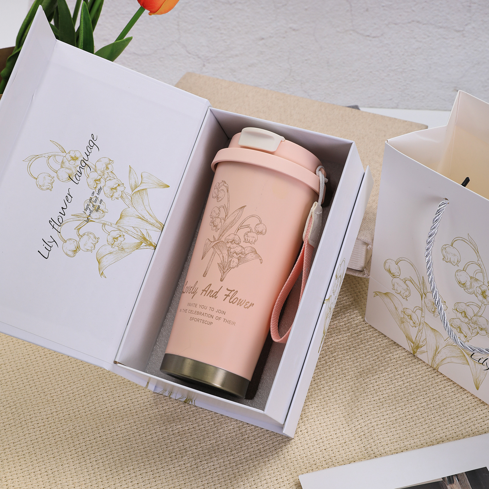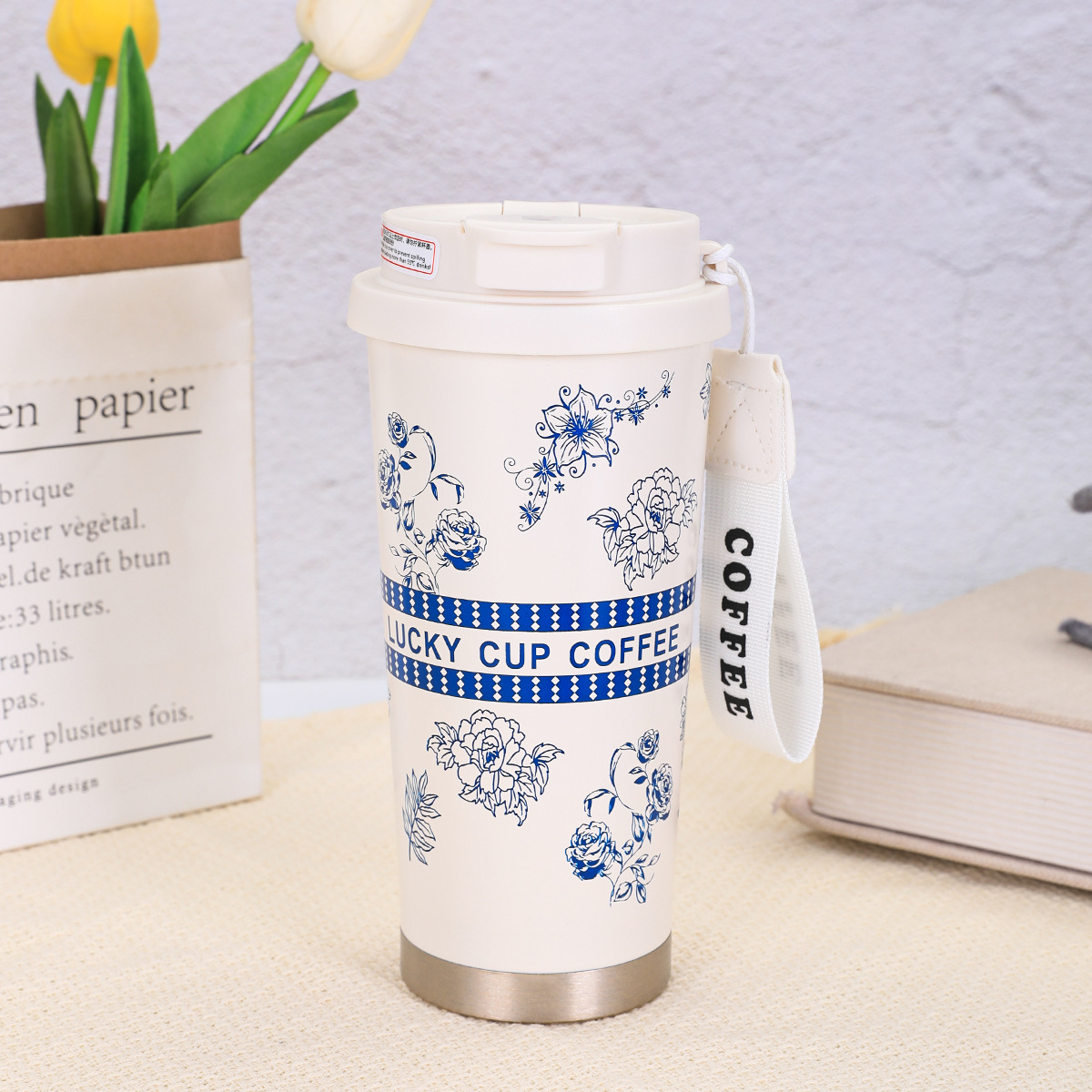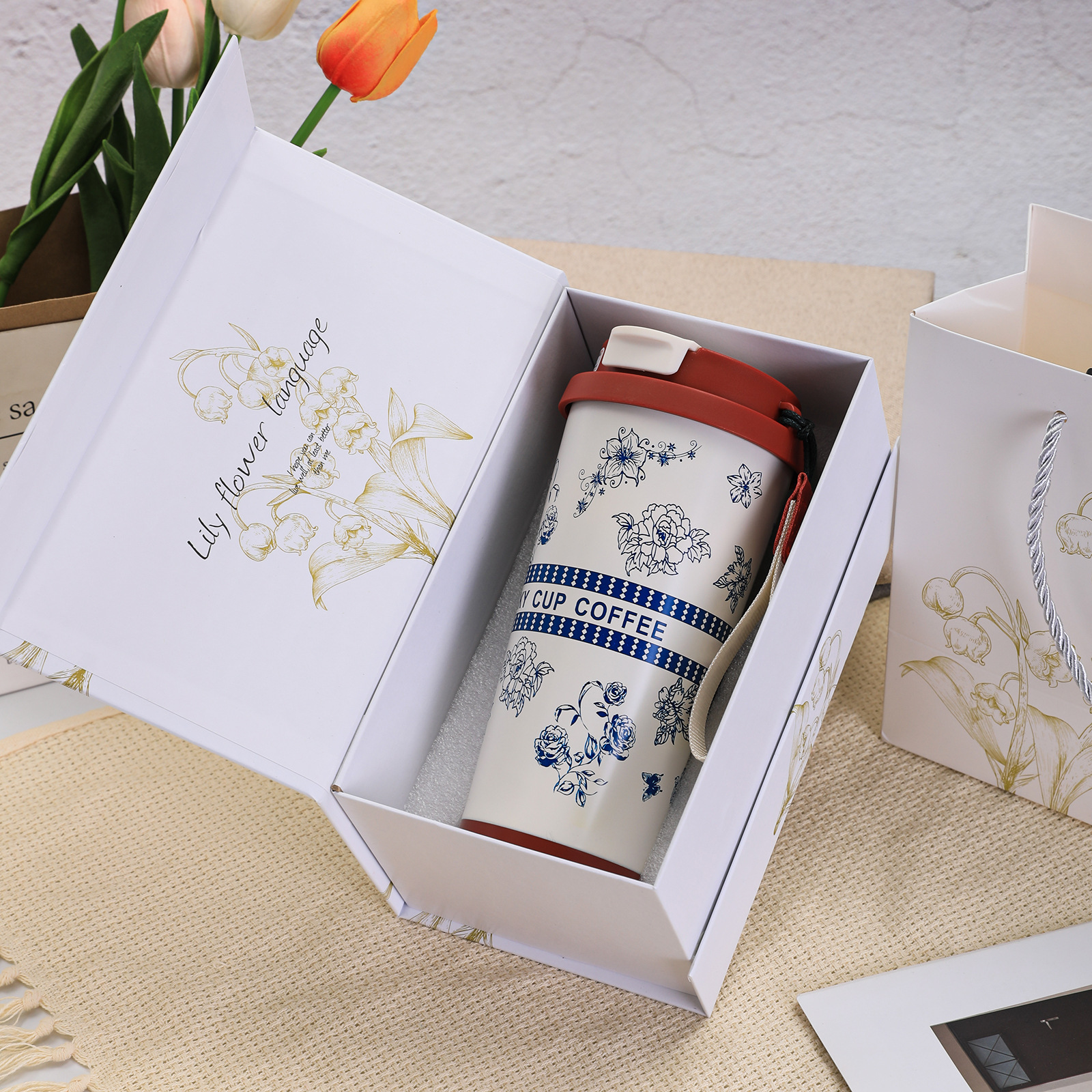 316不锈钢铃兰花咖啡杯高颜值男女真空保温杯轻奢双层提绳吸管杯