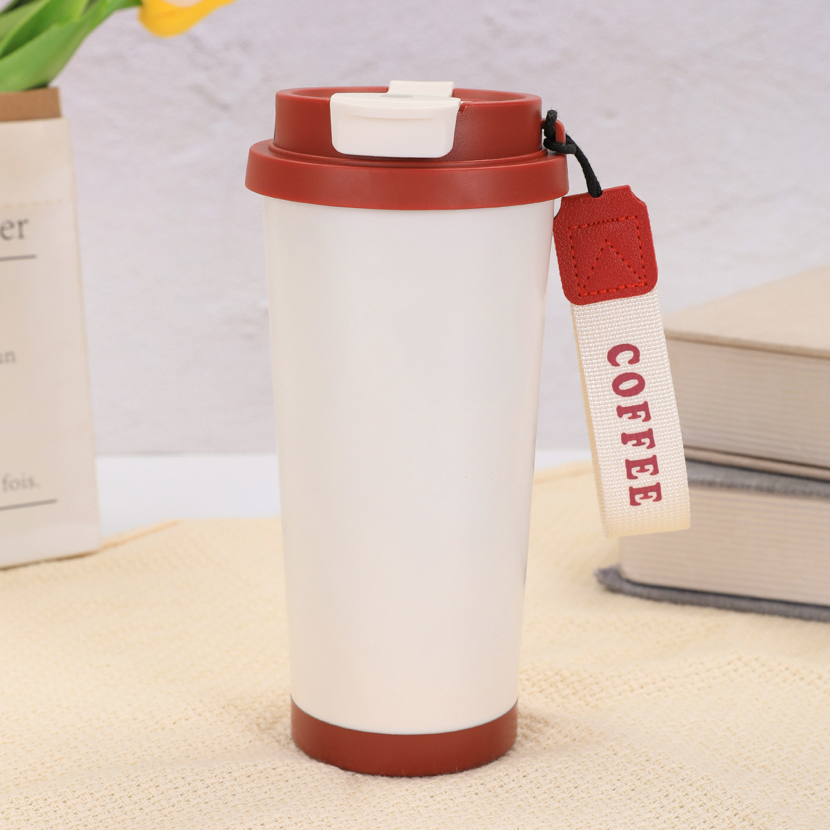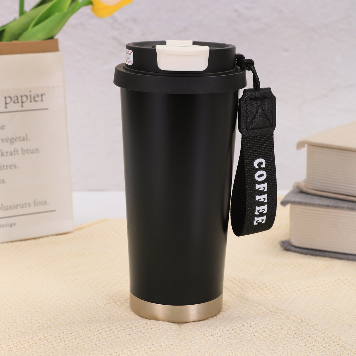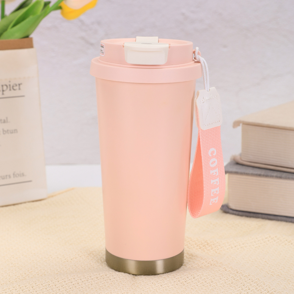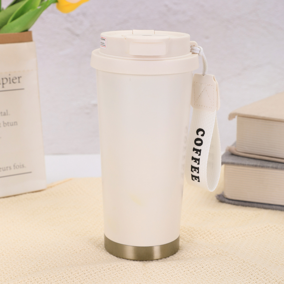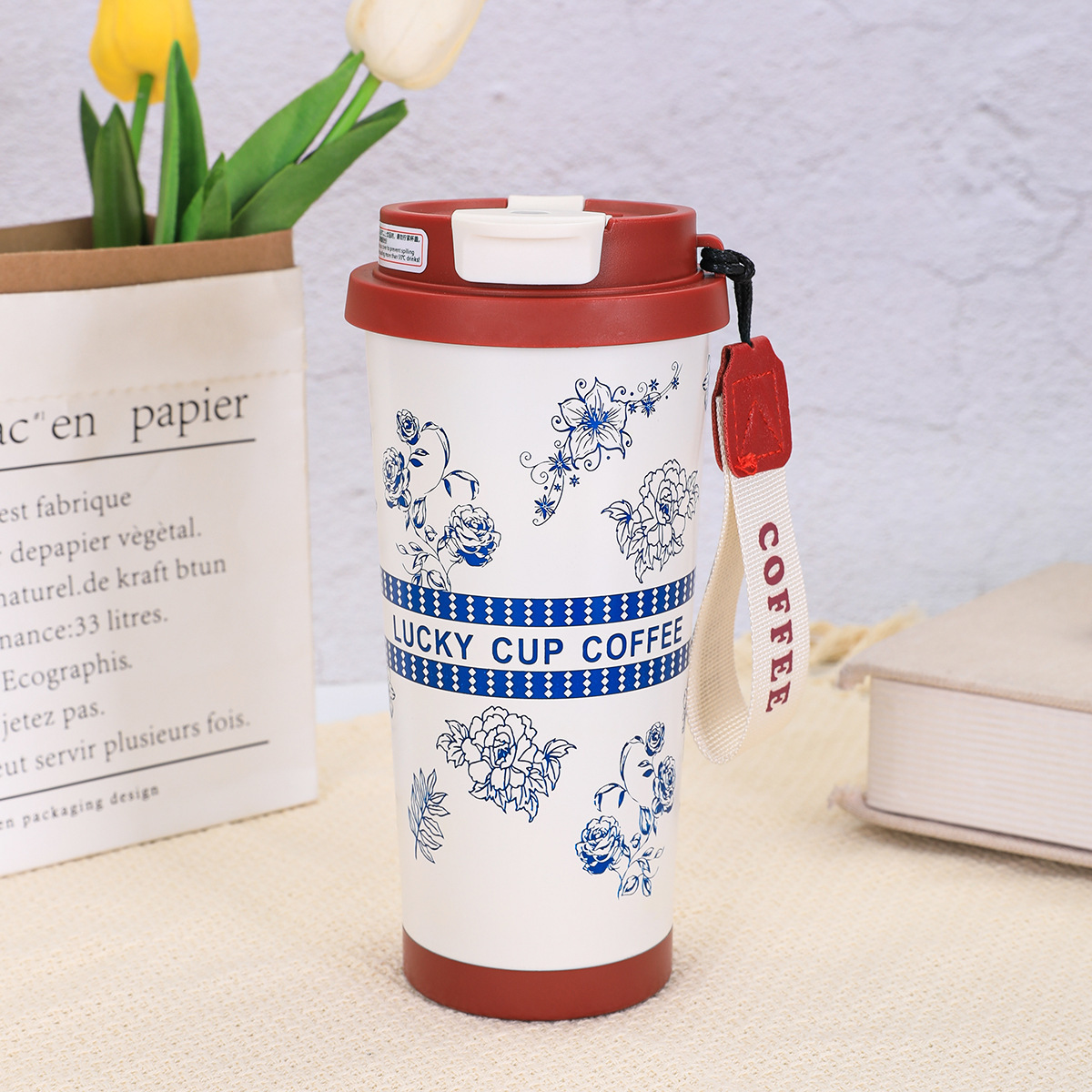 316不锈钢铃兰花咖啡杯高颜值男女真空保温杯轻奢双层提绳吸管杯