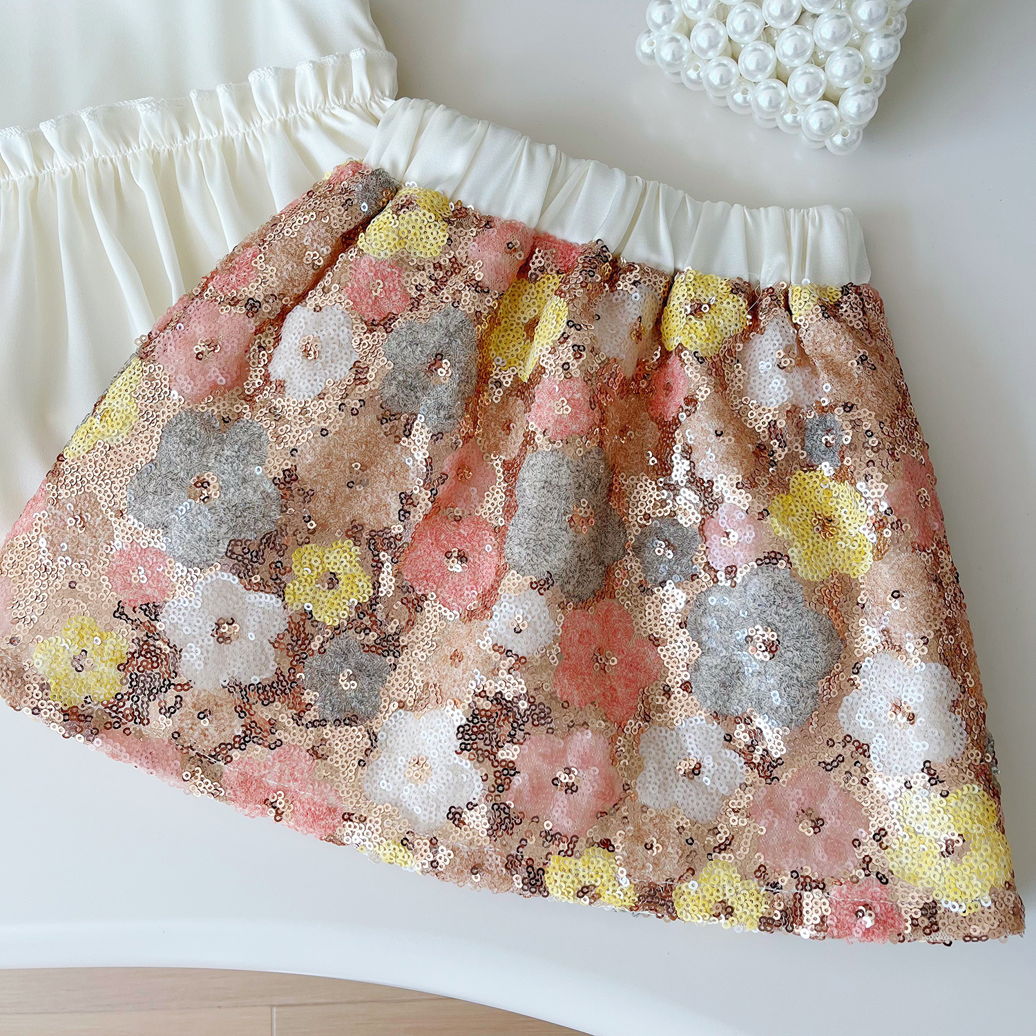 女童套装2025夏季新款时尚吊带背心上衣+亮片半身裙两件套跨境