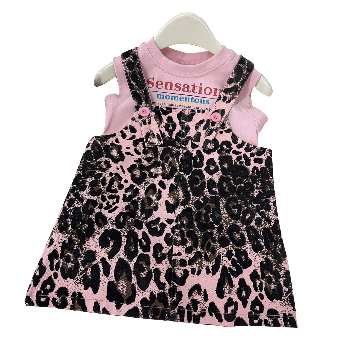 女童套装2025夏季新款时尚无袖字母印花T恤+豹纹背带裙公主两件套