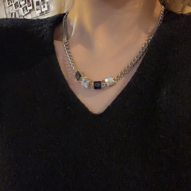 小众甜酷风方形水晶项链拼色冷淡风锁骨链 ins短款嘻哈颈链配饰潮