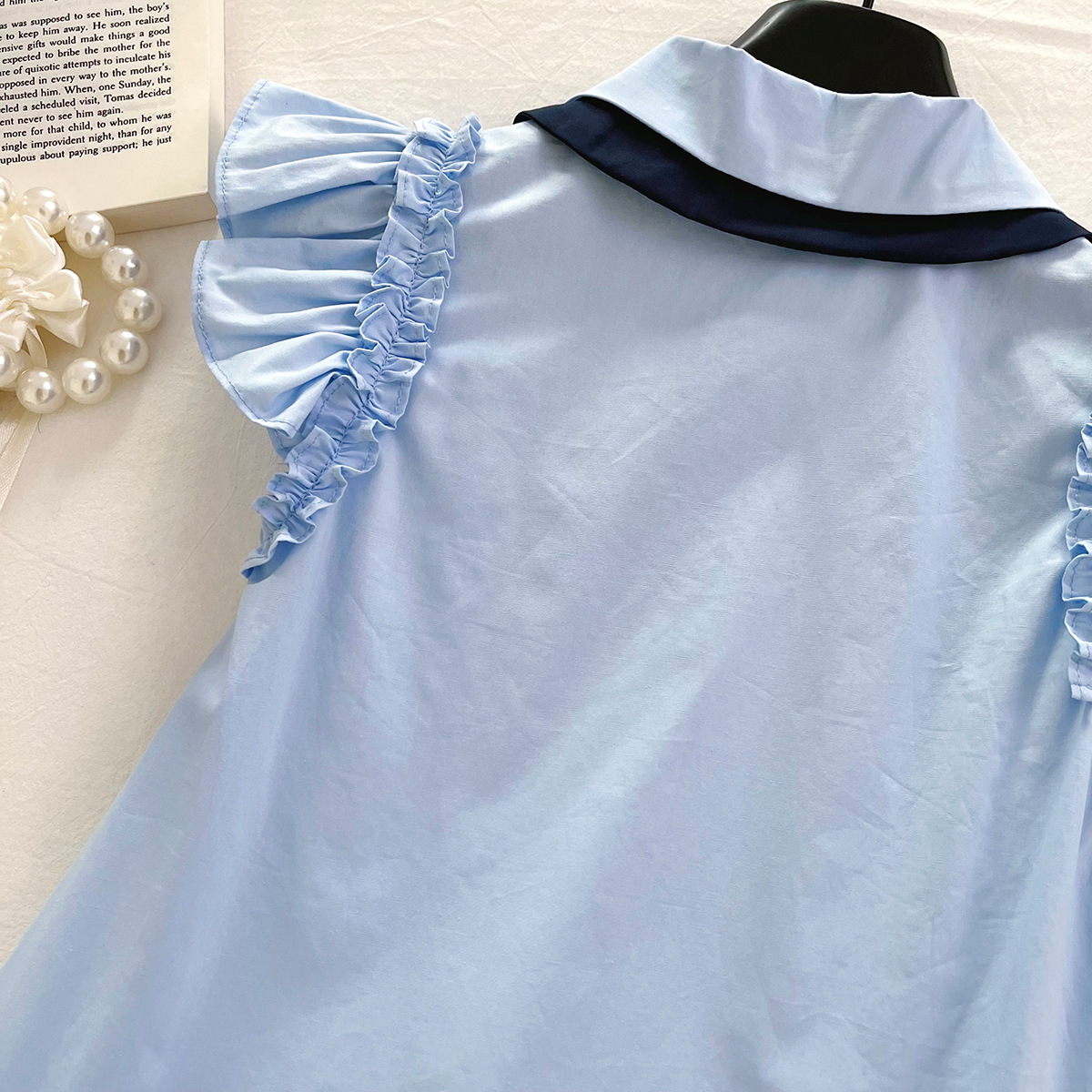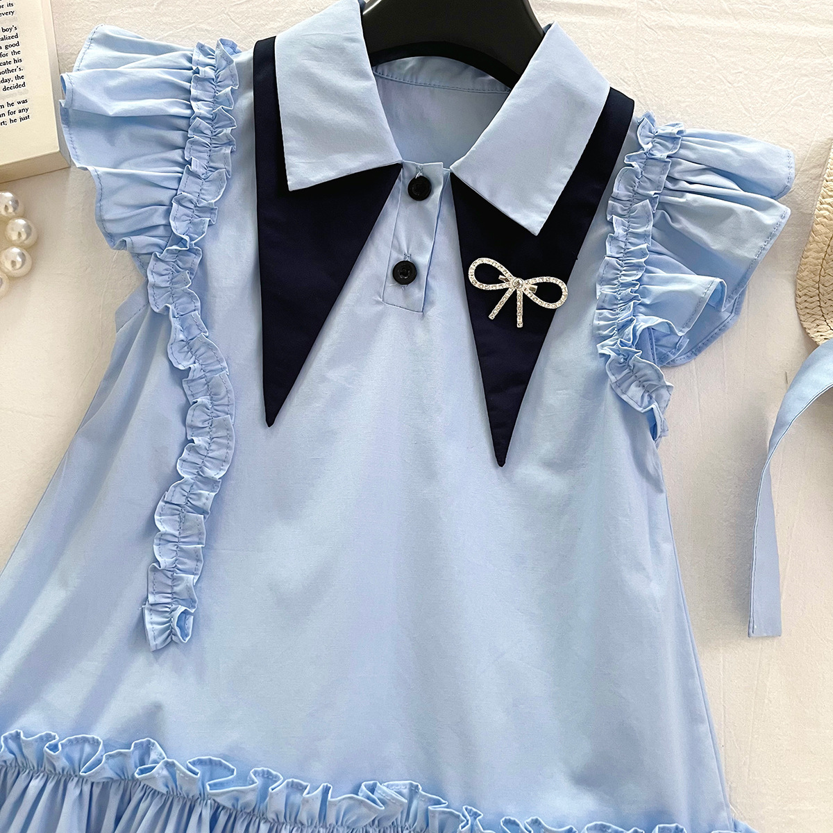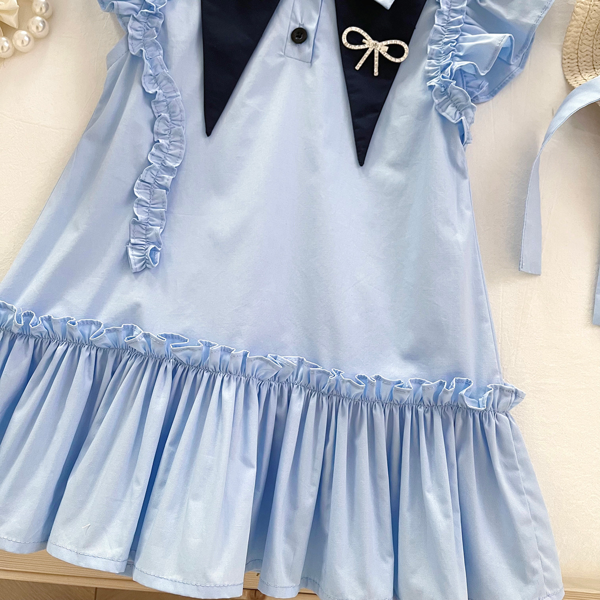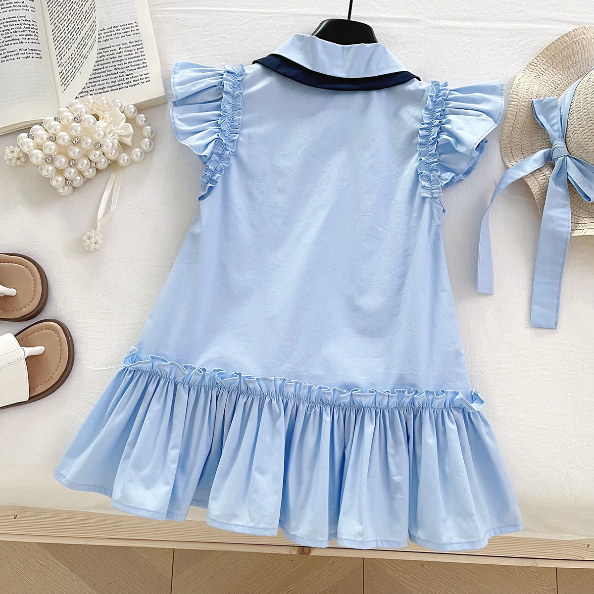 女童连衣裙2025夏季新款韩版百搭飞袖衬衫领连衣裙