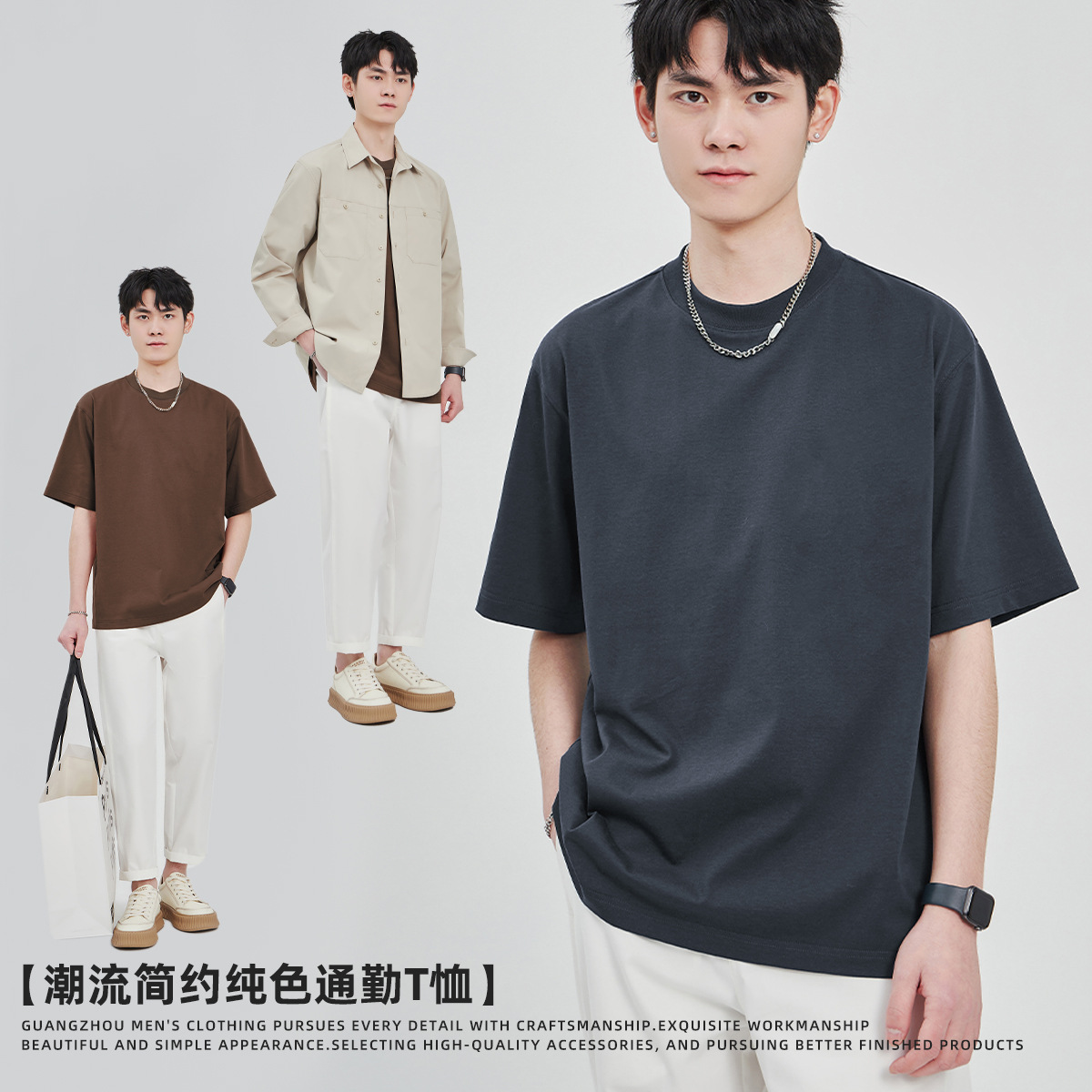 春夏新款潮流圆领速干体恤 纯色宽松休闲短袖T恤男