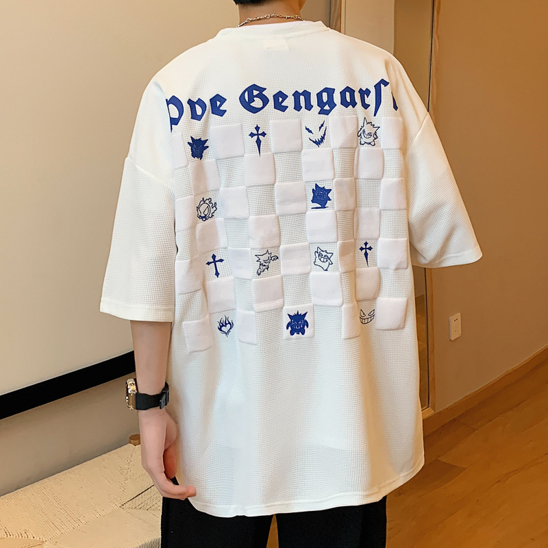华夫格短袖男款夏季潮牌潮流ins宽松大码衣服美式高街重磅半袖t恤