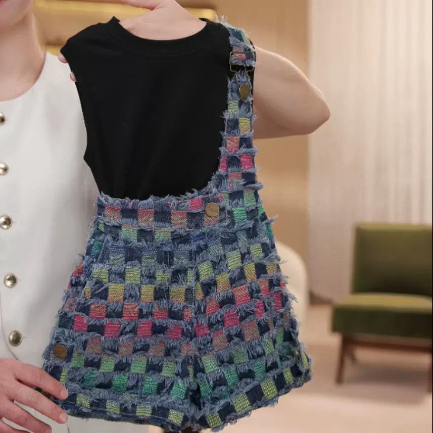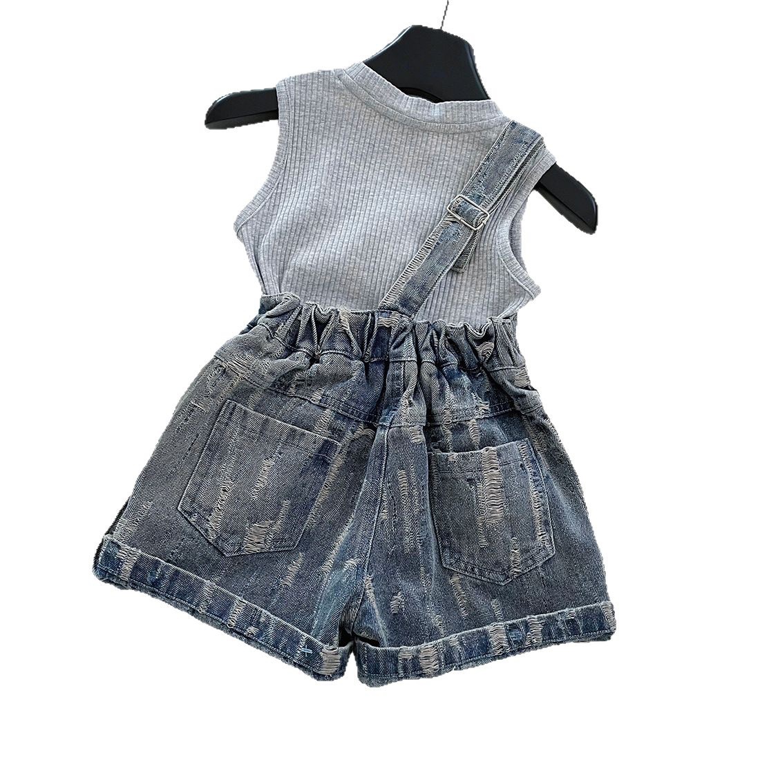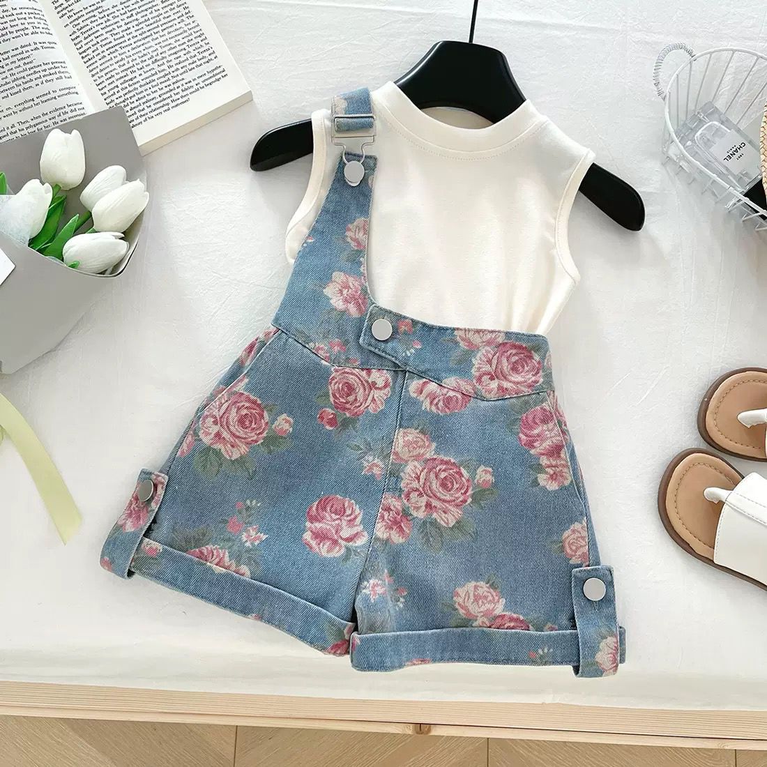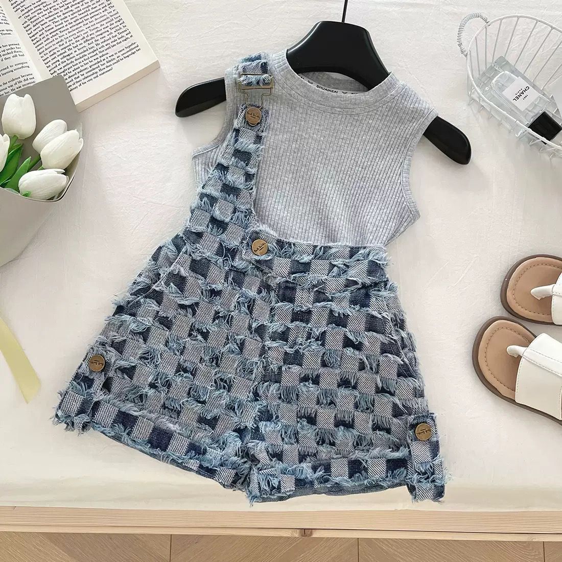 童装女童套装2025夏季新款针织背心T恤上衣牛仔背带裤两件套跨境