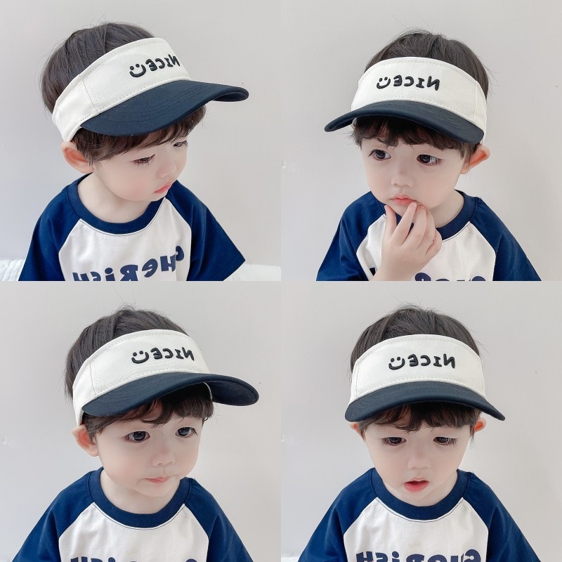 男童女童户外遮阳帽子夏季宝宝透气空顶帽儿童韩版格子凉帽潮