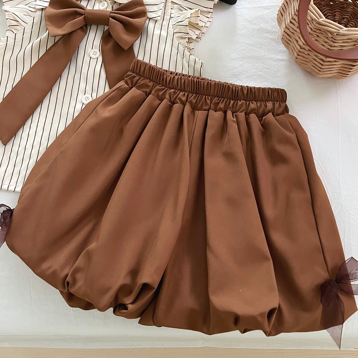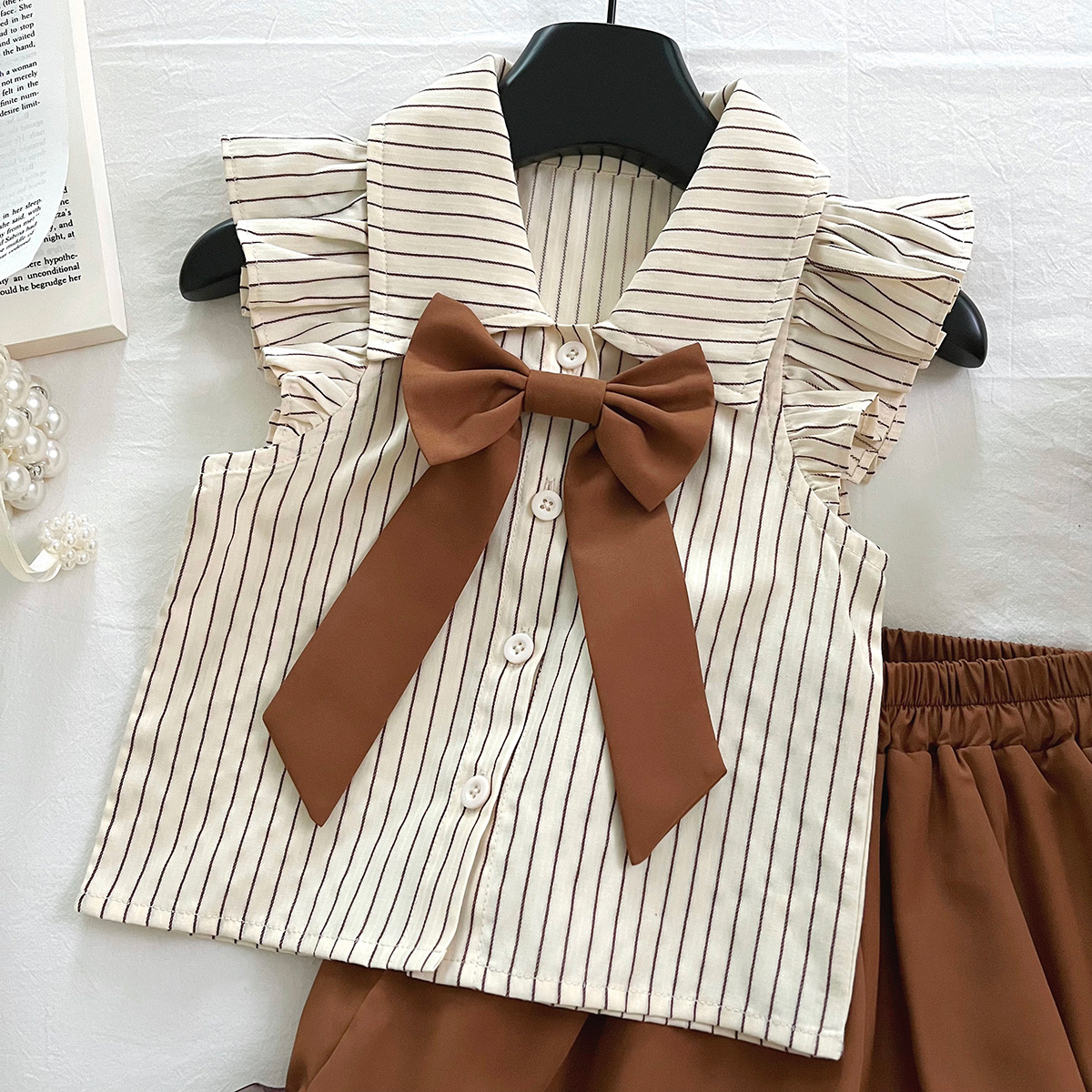 女童套装2025夏季条纹飞袖衬衫+花苞短裤时髦洋气儿童休闲两件套