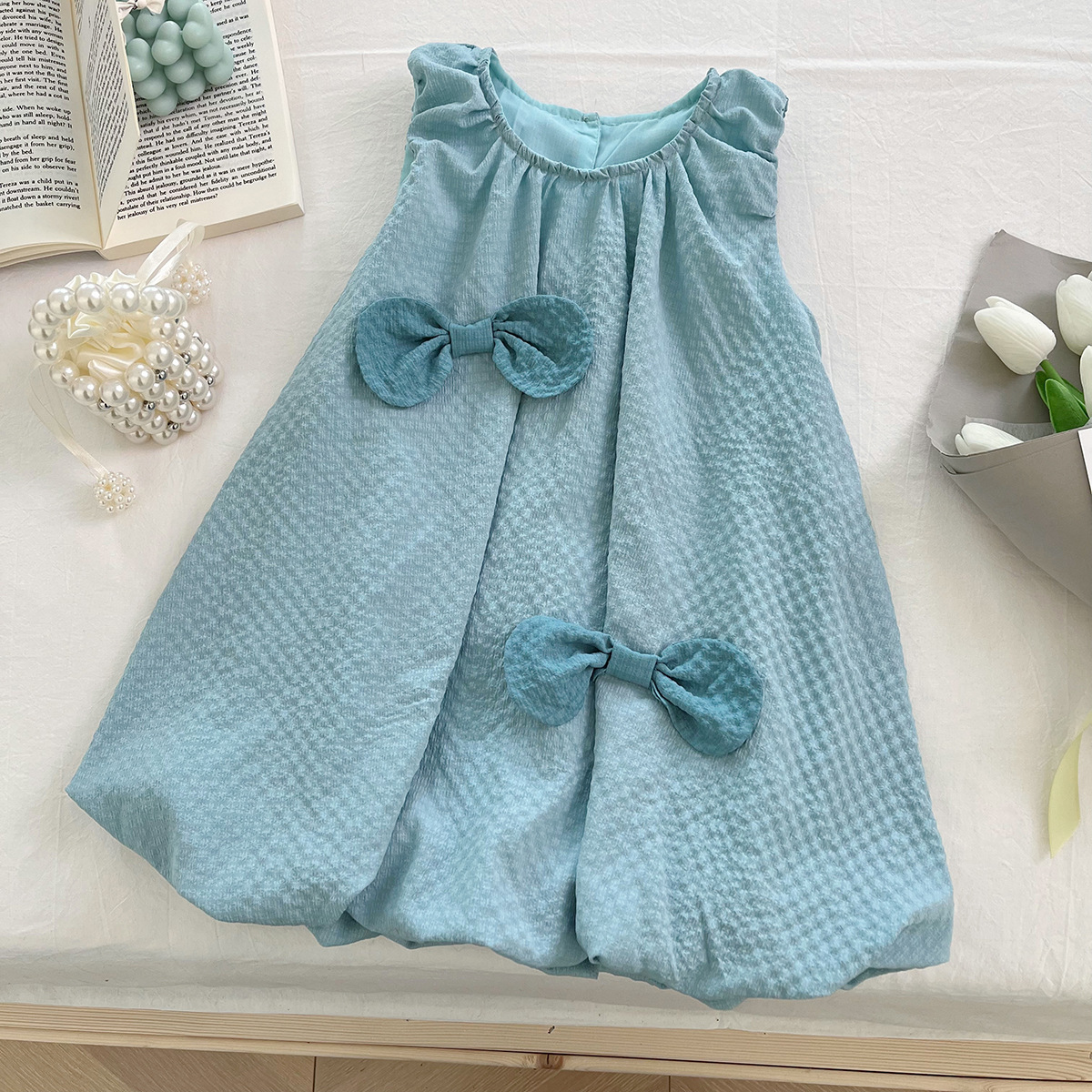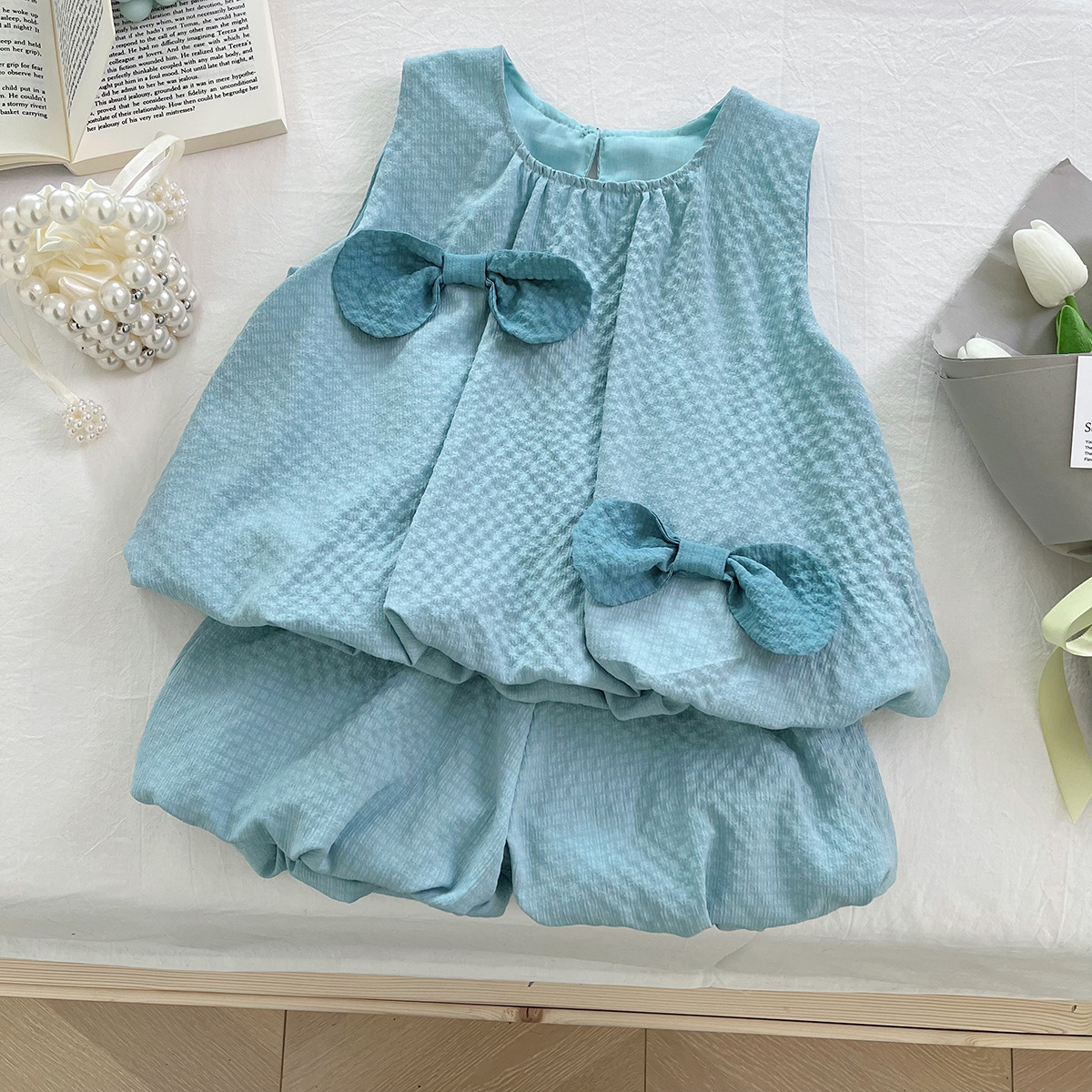 女童套装2025夏季新款韩版可爱蝴蝶结无袖衬衫+短裤女宝宝连衣裙