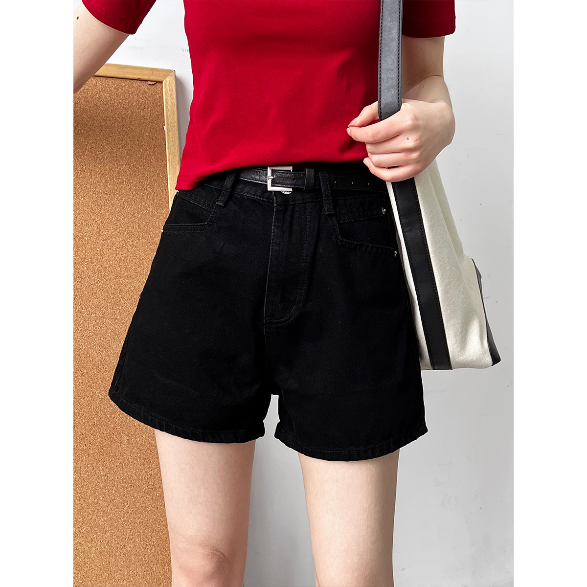 水洗毛边牛仔短裤女夏季显瘦休闲百搭外穿直筒高腰热裤A12