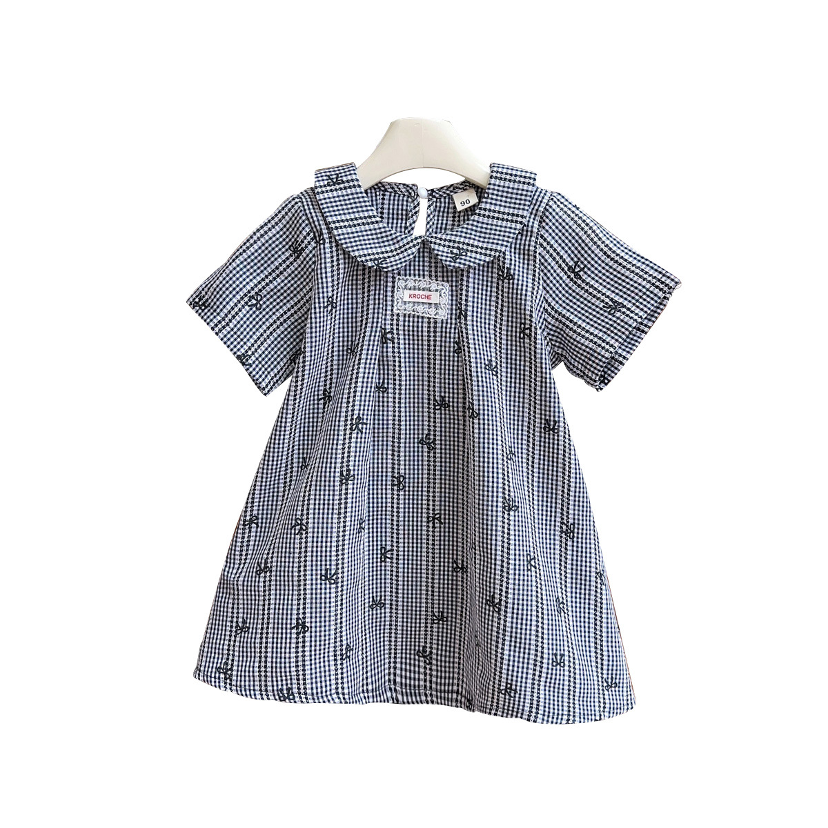 女童连衣裙2025夏季新款儿童娃娃领印花格子短袖公主裙