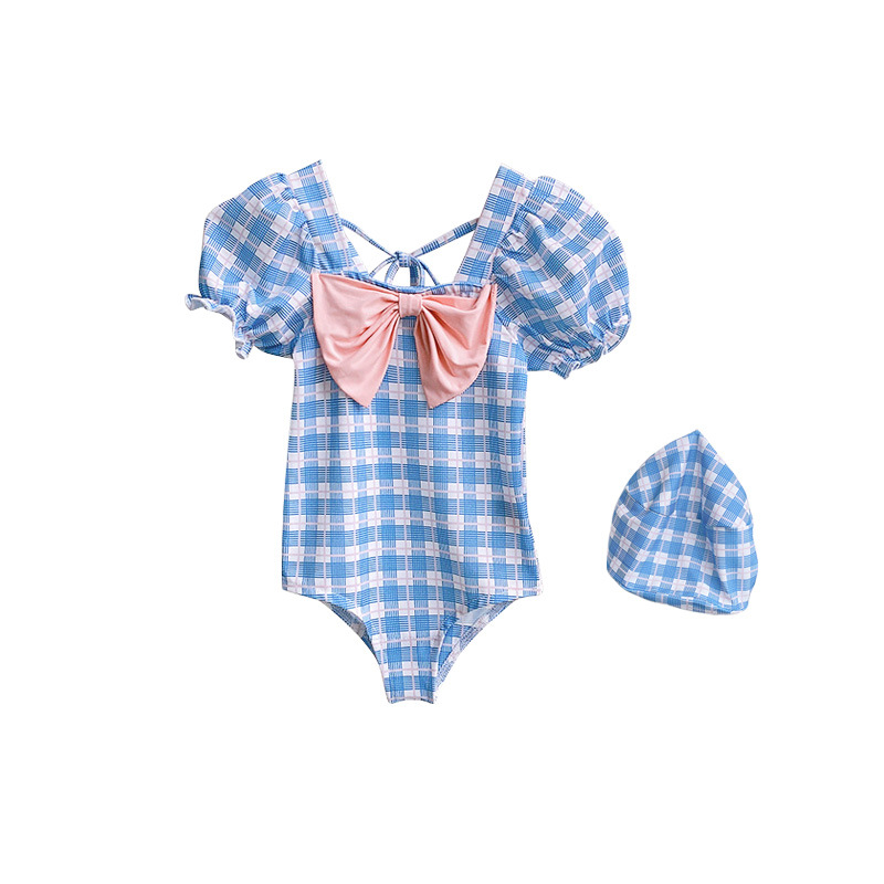 女童泳衣夏季女宝宝连体游泳衣小女孩速干温泉沙滩儿童泳装送帽子
