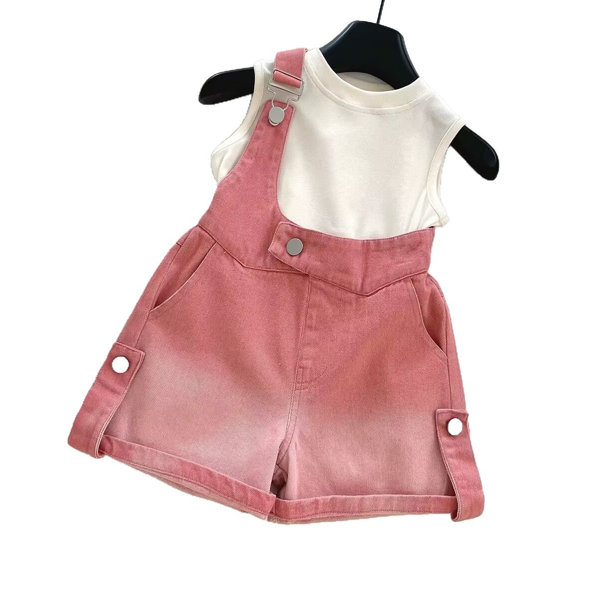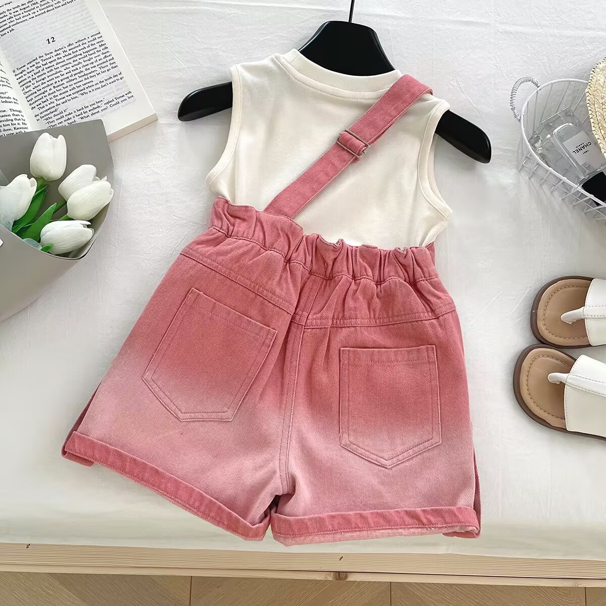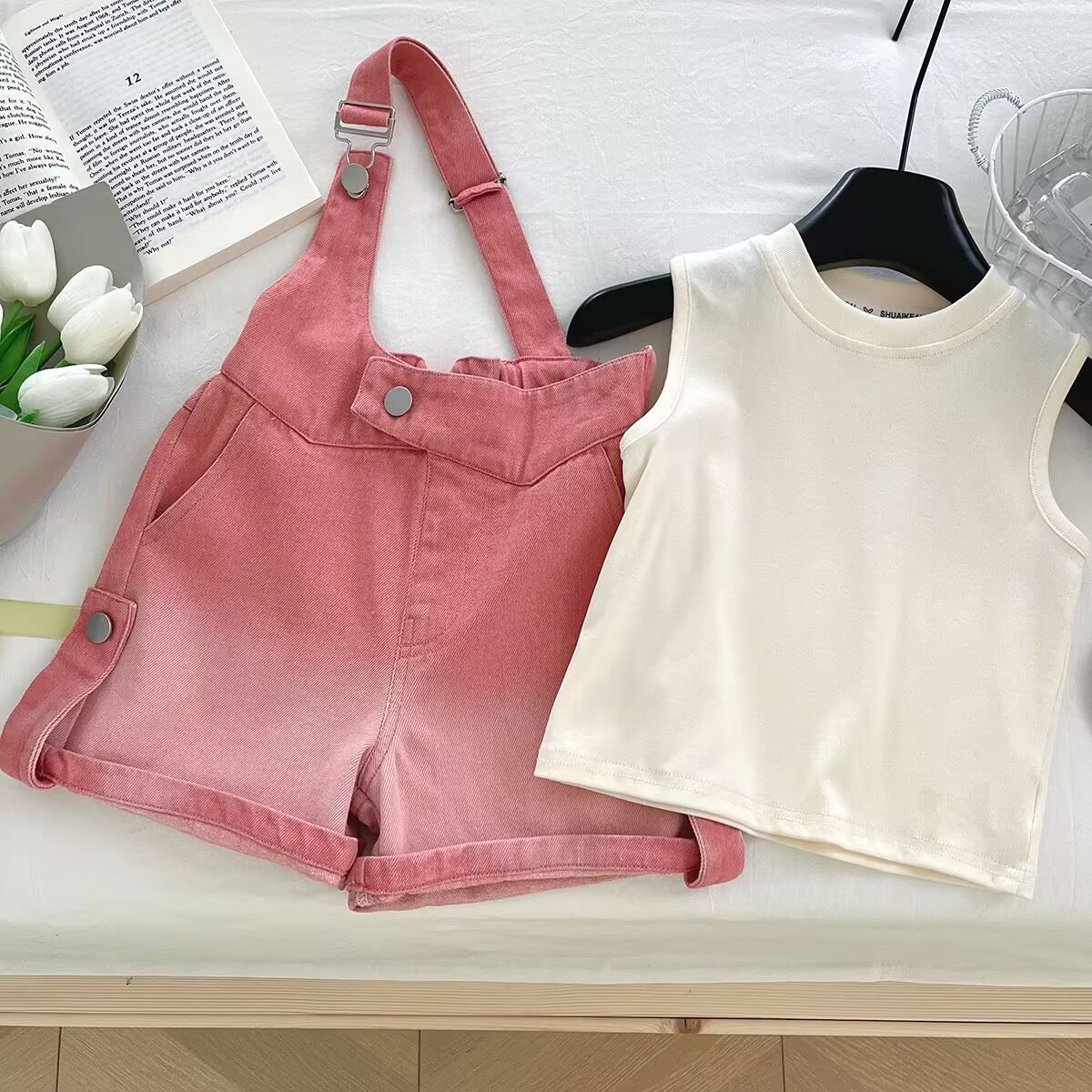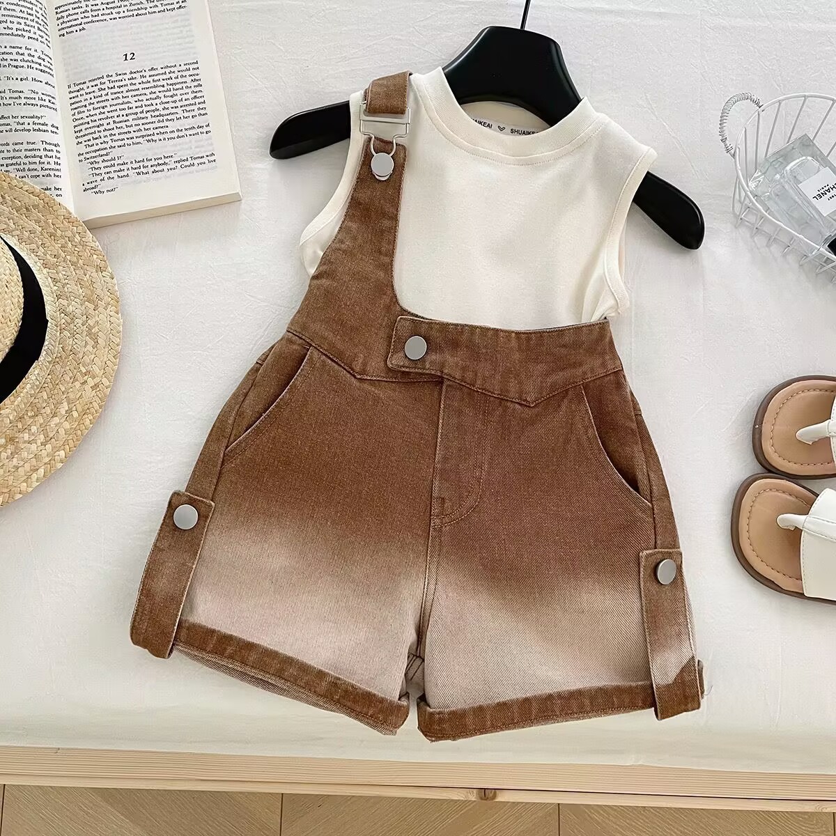 女童牛仔套装2025夏季新款韩版儿童背心T恤牛仔背带裤两件套
