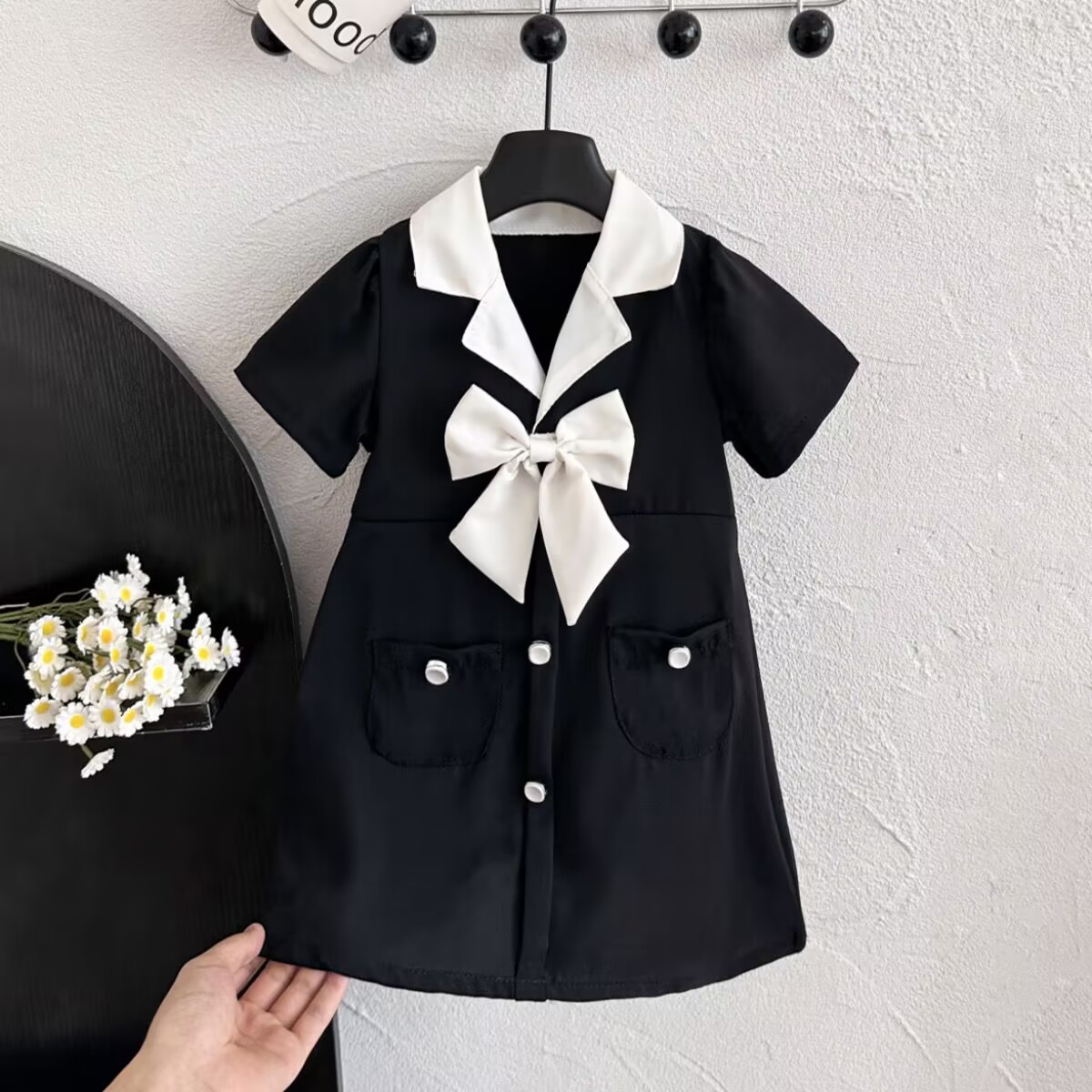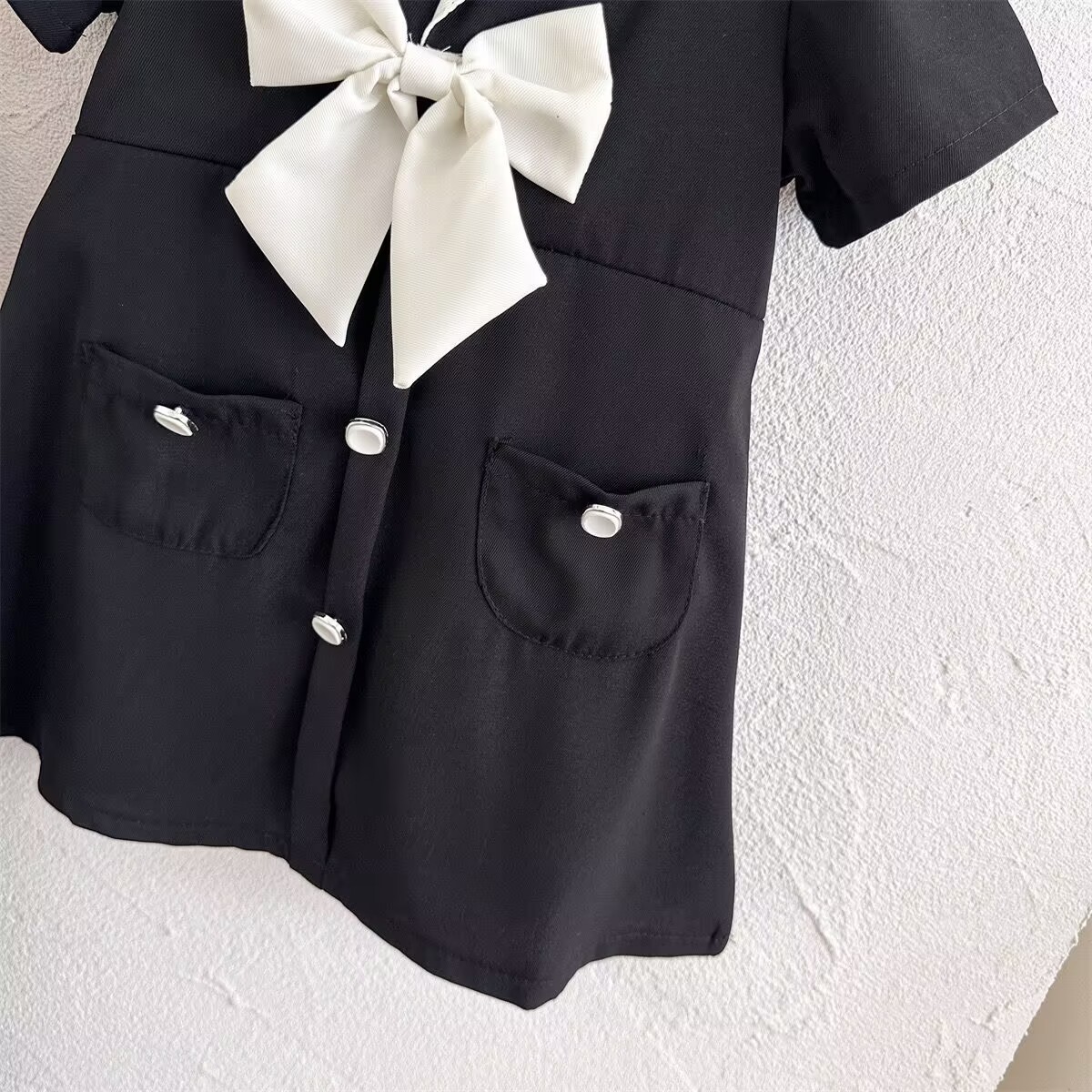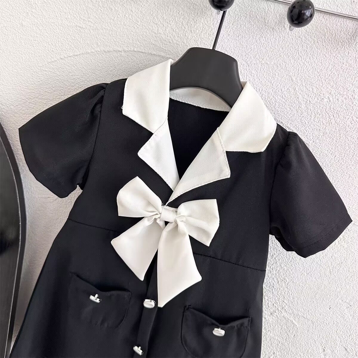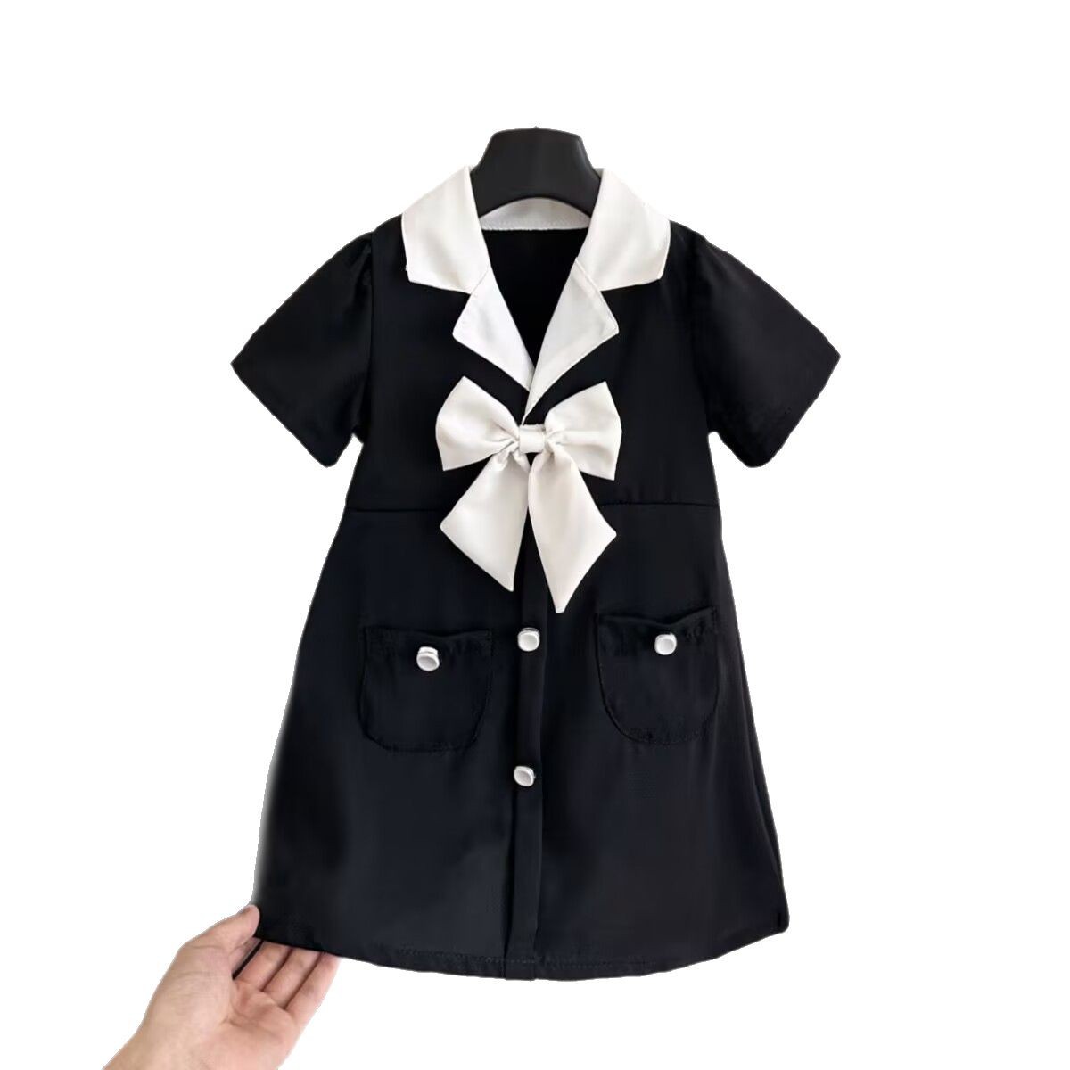 女童西装连衣裙夏季2025新款短袖蝴蝶结公主裙中小女童