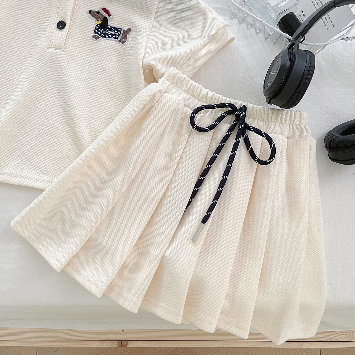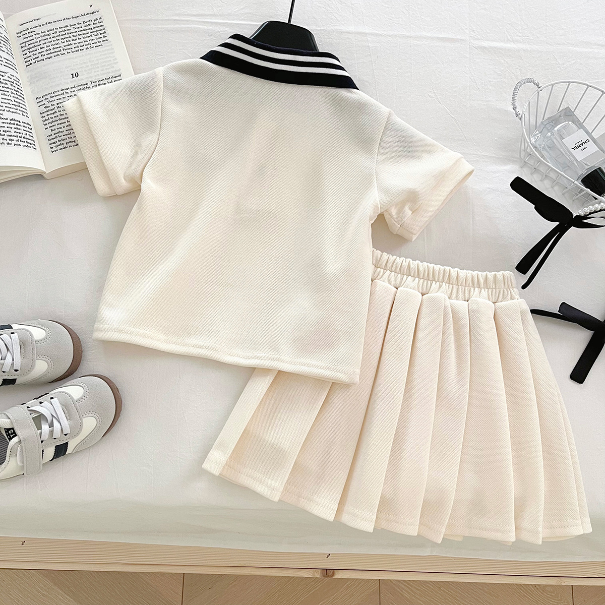 夏季女童套装2025新款短袖Polo衫百褶裙韩版女宝宝运动两件套