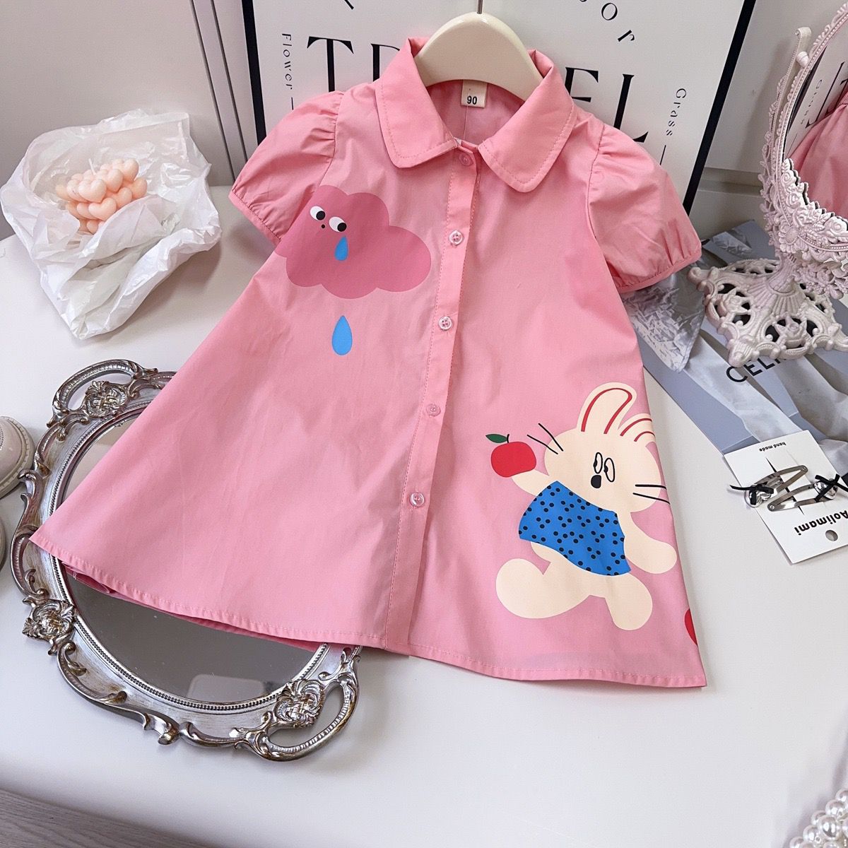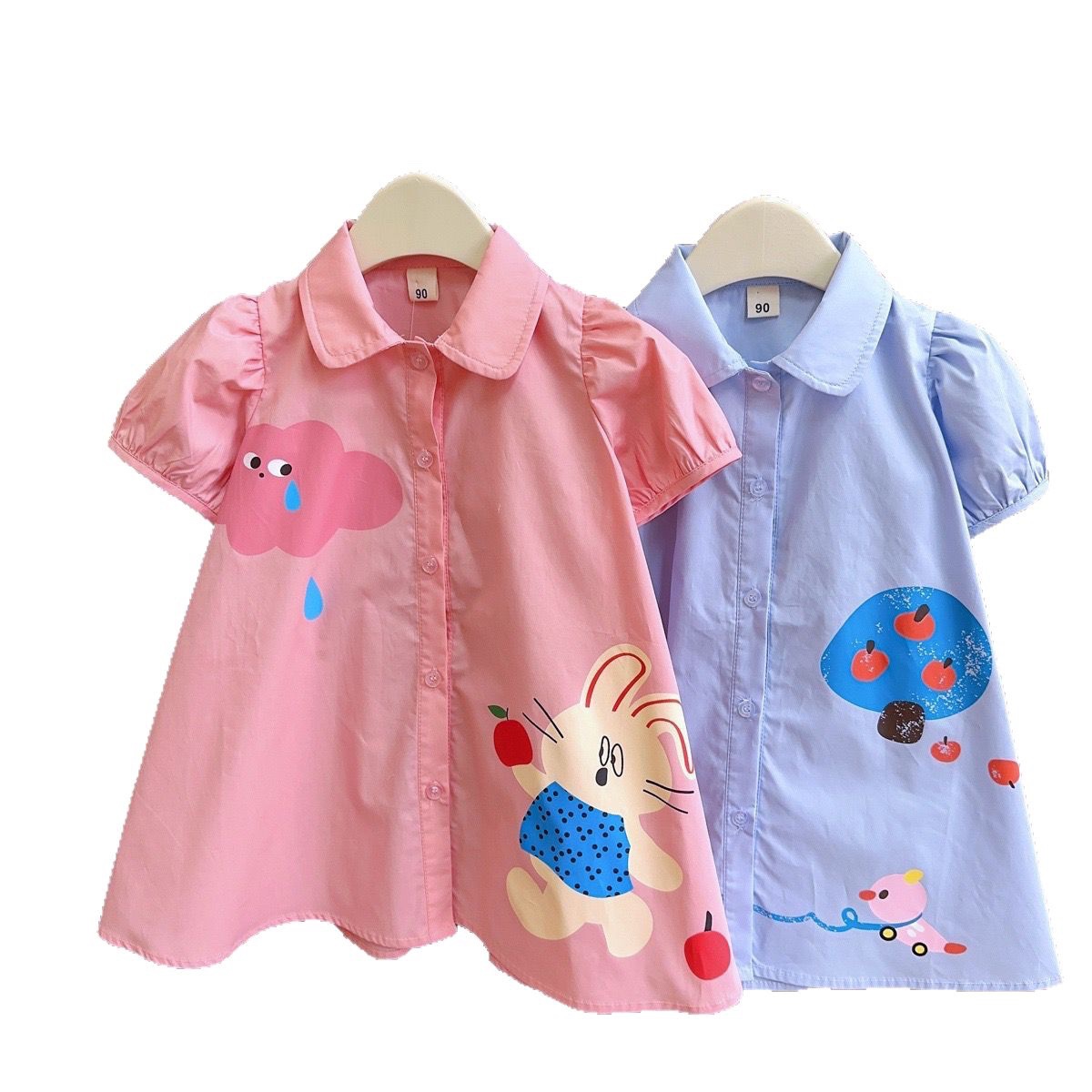 女童衬衫连衣裙2025夏季新款短袖小兔子卡通印花公主裙