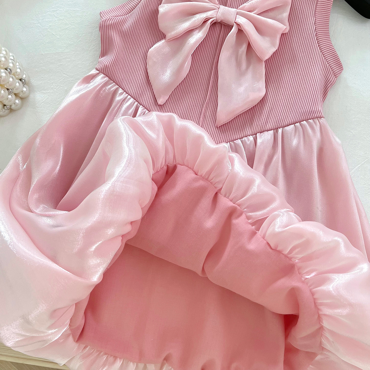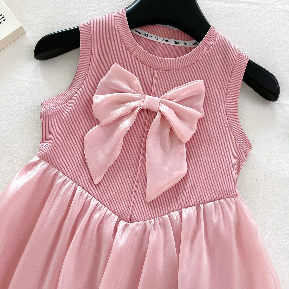 夏季女童连衣裙2025新款女宝宝韩版无袖背心蝴蝶结洋气公主裙跨境